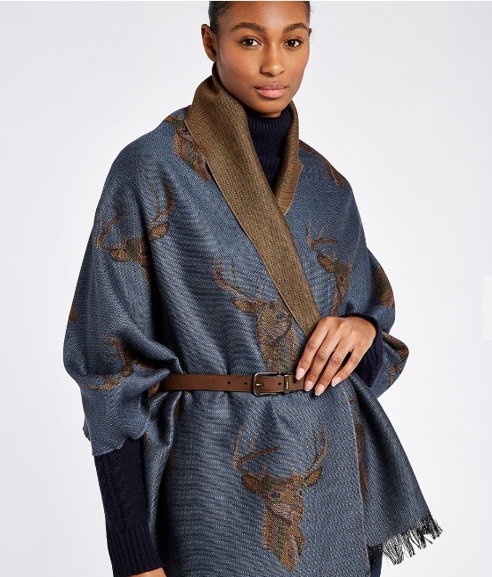 Med Dubarry Heatherdale sjalet kan du både have det lækkert lunt og være super chic! Det ultimative og super klassiske "countrystyle" tørklæde. Måske bedre betegnet som sjal. Super lækker kvalitet og kan bruges på mange måder. Fremstillet i Skotland af 100% uld med smukt hjortemotiv vævet ind i stoffet. Kontrastfarve på bagsiden. En perfekt gave til veninden, moderen eller hjælperen som elsker jagt, natur og countrystyle. Dubarry Heatherdale er meget behageligt i materialet og den 100% jacquard uld med smukt motiv oser af elegance og stil samtidig med at du holder dig varm.
