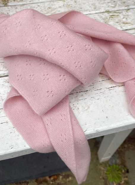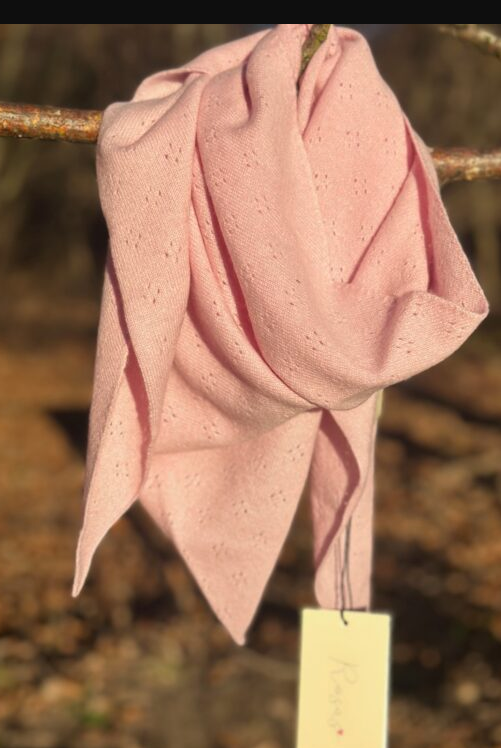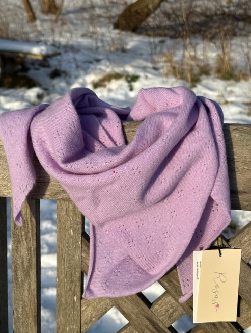 Disse tørklæder kan man blive afhængig af- dette er samme kvalitet som de almindelige Rosas Cashmere trekantstørklæder, men til forskel er det fineste hulmønster. Så fint! Størrelsen er lille og velegnet til meget af året under danske vejrforhold.