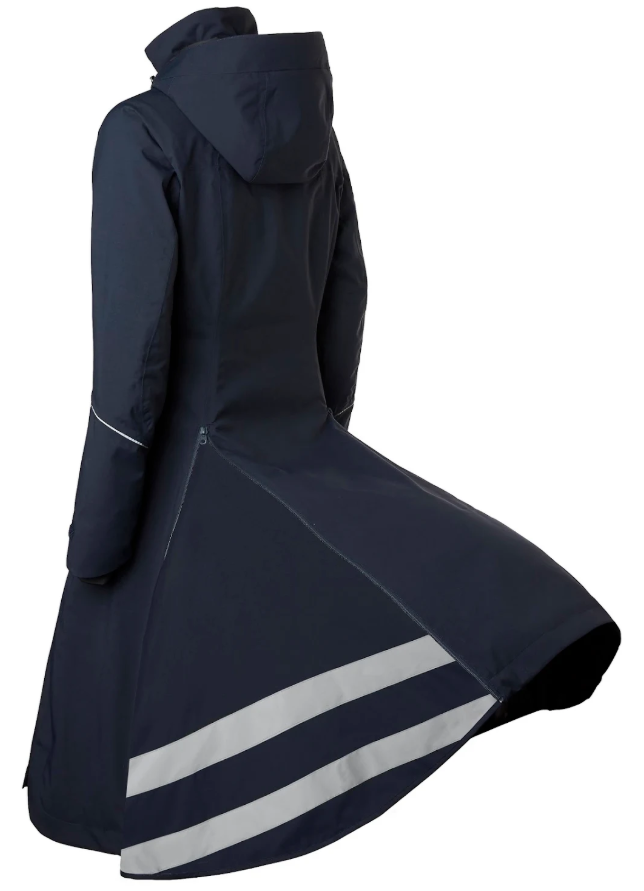 Stierna Nova Rain Coat har utallige detaljer der vil gøre gavn for rytteren, når man har den på i sadlen! Pasform som tilbyder yderst stor bevægelighed. Frakken har høj krave som kan trækkes op og beskytte hagen og munden hvis vejret virkelig rusker. Hætten er aftagelige. Frakken har en flap som kan dække over sadlen. Gode lommer som er tapede og vandtætte. Elastiske benstropper for at sikre, at frakken sidder godt under ridning.