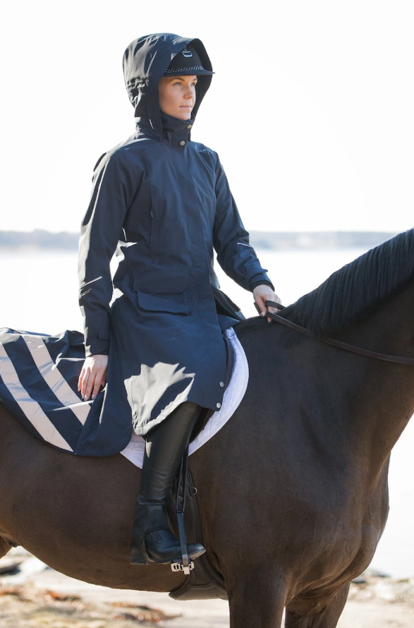 Protects you rain and wind while releases excess heat and moisture from the body and the layers underneath. A water and windproof yet breathable garment with all seams tape-sealed will keep you comfortable even during the wettest days. It is your shield against the elements and no matter the conditions you and your horse can still perform at your very best.