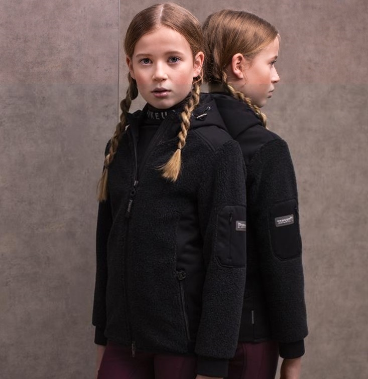 Pikeur Suna teddy jakke er en virkelig lækker, varm og velsiddende jakke i teddy fleece til den unge rytter. Der er mesh før som gør den åndbar samtidig med den er varm. Der er softshell i siderne så jakken er elastisk og giver stor bevægelsesfrihed. 2-vejs lynlås og gode lommer, som også har lynlås. En fleece som kan bruges som jakke i sig selv eller som ekstra trøje, når det bliver rigtig koldt. Klassisk mørk grå farve som vil passe til det meste.