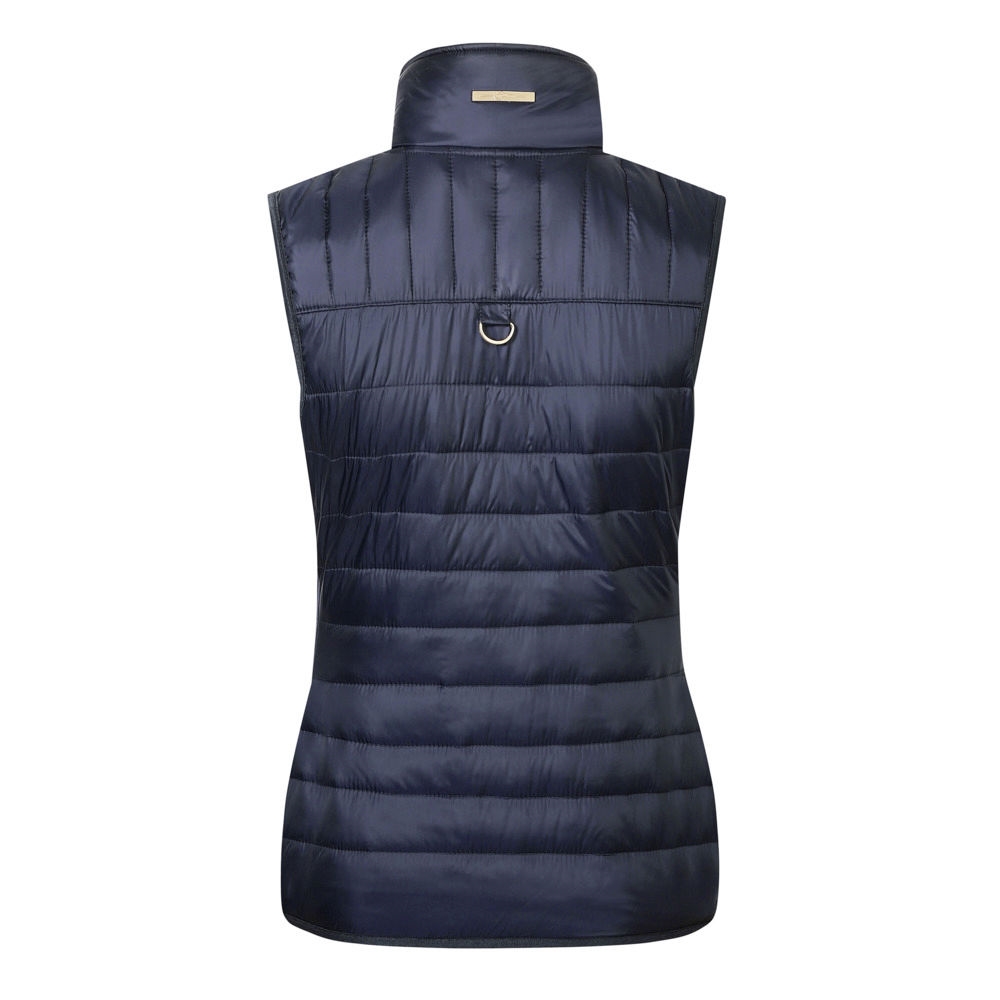Kviltet vest fra Covalliero i 100% polyester med elastisk materiale i siderne, så vesten har en god pasform og et feminint snit. Vestens lynlås er tovejs, hvilket kan være rart, når du er ude og ride, og den kan vaskes ved 30°.