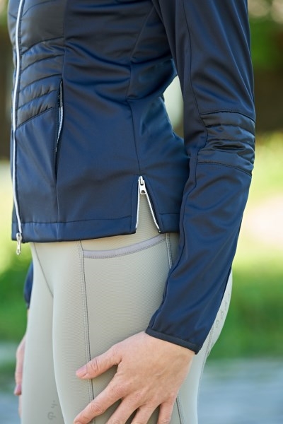 Super lækker og klassisk hybrid jakke fra Covalliero. En kombination af kviltet materiale og softshell. Denne jakke er ultra sporty og let. Den er femnin og flot faconsyet. 2-vejs lynlås, lynlåslommer udvendigt, og en blød og lækker lille krave til at skærme mod vinden. En jakke du kan bruge til alt - og året rundt! I de helt kolde måneder kan du have den på under en varm jakke og om sommeren fungerer den som en super lækker og sporty jakke der skærmer mod vind og vejr.