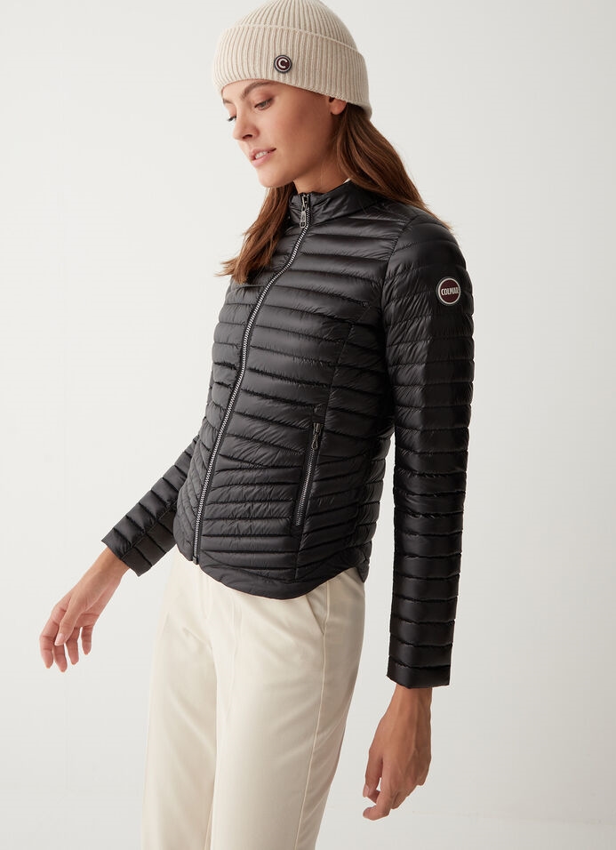 Super lækker dunjakke fra italienske Colmar. Enormt velsiddende og let - en jakke du kan bruge det meste af året. Den er lun som en let dunjakke nu er, den holder sig fantastisk og er også velegnet til lag-på-lag de helt kolde måneder, hvor den ikke fylder mere, end den kan være under en tyk jakke. En jakke du kan bruge til meget andet end ridning- skiløb og golf er oplagt, lige som den er stilfuld nok til at anvende som almindelig jakke. En feminin og praktisk jakke som vejer 100 gr.