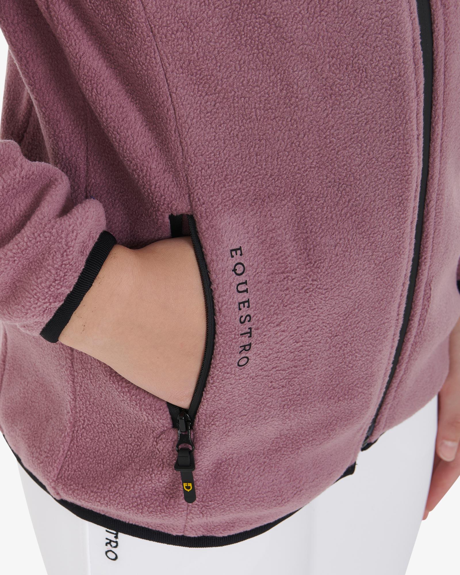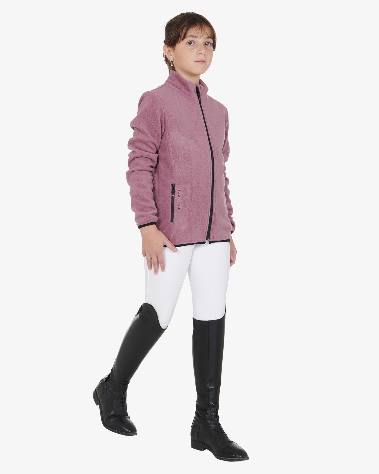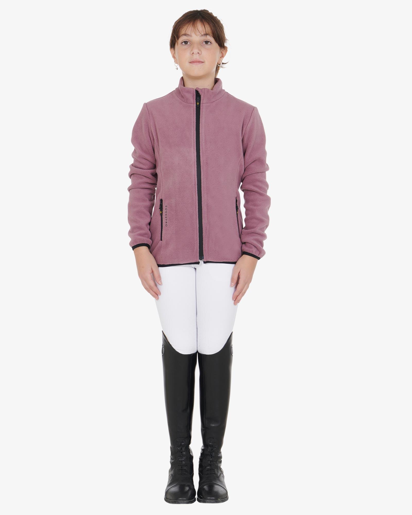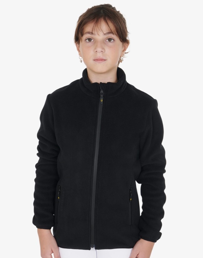 Super lækker kvalitetsfleece fra italienske Equestro. Fleecetrøje med lynlås til børn. En blød og praktisk fleece til de kolde tider. Den har termisk insulering og er åndbar, så den er behagelig at have på i kulden, og helvejslynlåsen foran gør den nem at arbejde med samt stilren i det sporty design.
