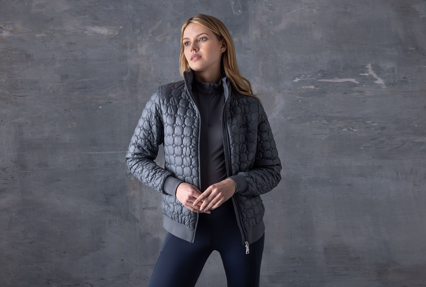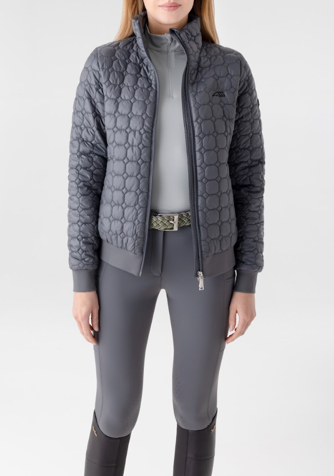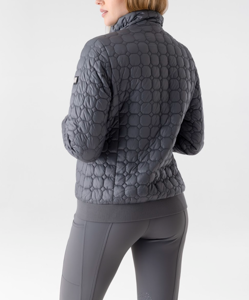 Equiline er italiensk stilsikker ridemode, som mange ryttere elsker, og denne jakke er ingen undtagelse. En smart og enkel kviltet jakke i et let materiale og flot pasform. Det lune og holdbare fyld i jakken er fremstillet af genanvendt materiale. En genial overgangsjakke som er kviltet i mønsteret octagon, som også findes på mange af Equilines uovertrufne sadelunderlag. En blød og opret krave skærmer mod vejr og vind. Udvendige skrålommer med lynlås samt en indvendig lomme med velcro. Lækker blød rib både i ærmer og talje.