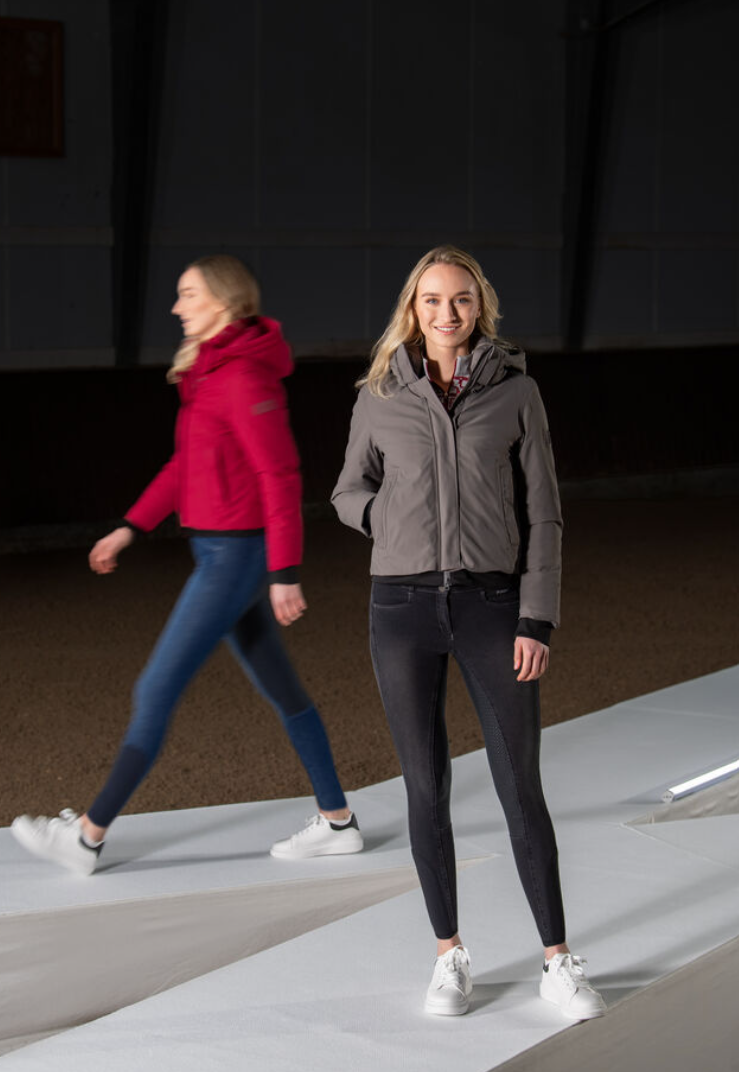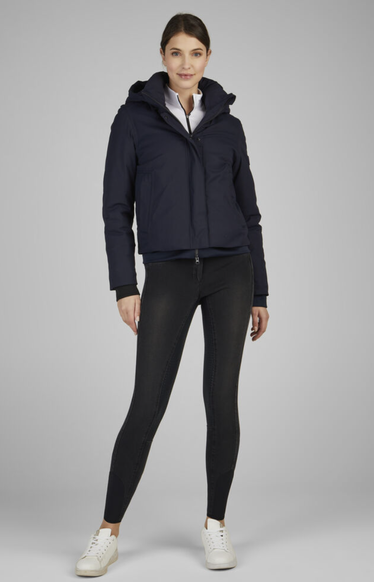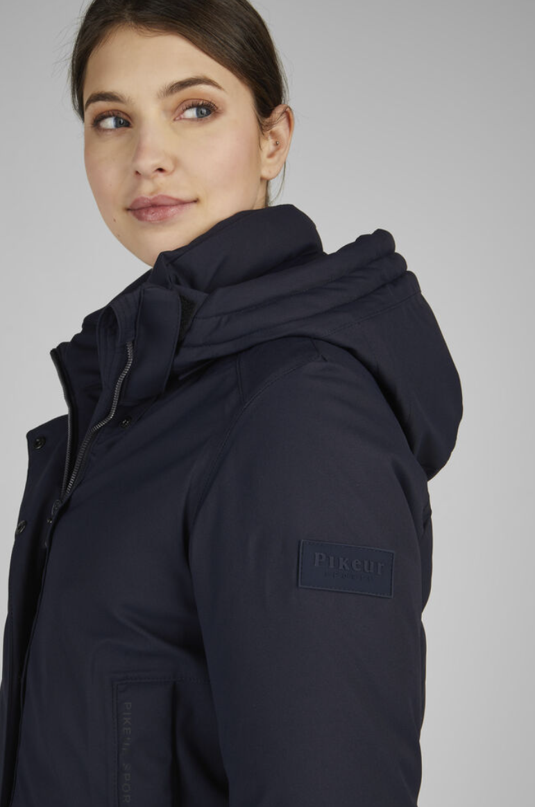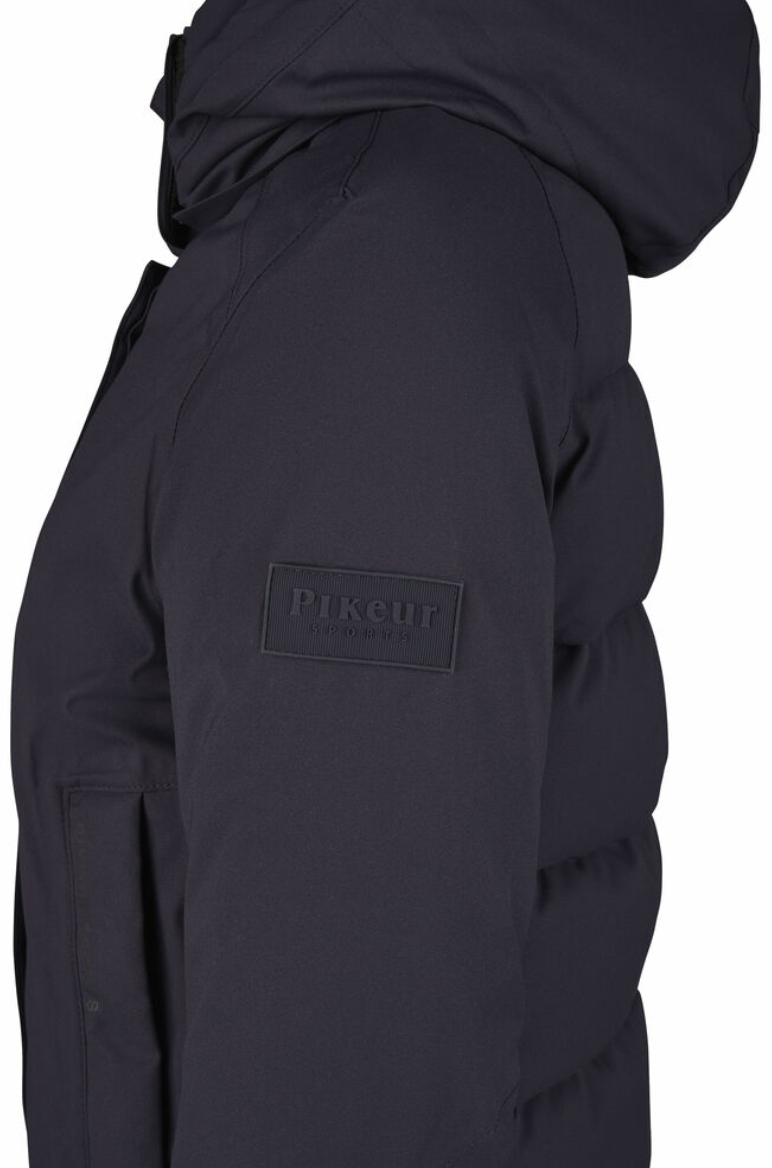 Pikeur Sports Rainjacket - en sporty, varm og vandtæt jakke til ridning eller andre udendørs aktiviteter! Denne jakke er stilren og klassisk. Den er med et rent fladt look foran og kviltet puf bagtil. Pikeur Sports Rainjacket er fremstillet af vandtæt 4-vejs stretch materiale. Den er vandtæt og varm, samtidig med at den er åndbar og tilbyder masser af bevægelsesfrihed. Materialet er af høj kvalitet og elastisk, hvilket gør denne jakke særdeles velegnet til ridning og anden aktivitet. Hætten er aftagelig og jakken er mindst lige så pæn uden hætten. Jakken har et vandsøjletryk på 8000 og åndbarhed på 5000 samt tapede sømme. Længden er til omkring hofterne, så du kan uden problemer ride med jakken på.