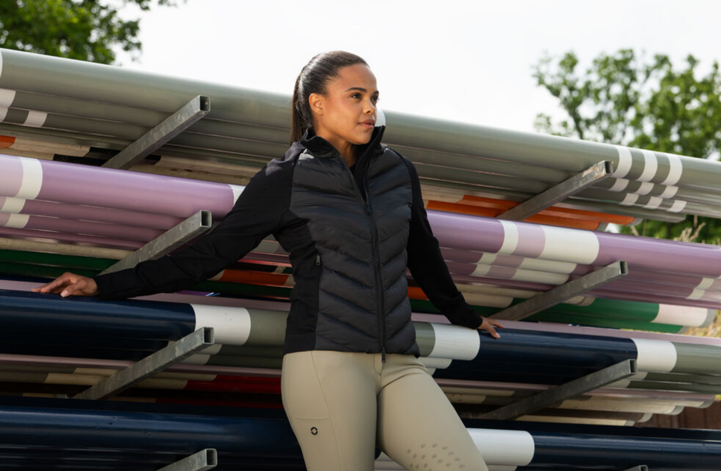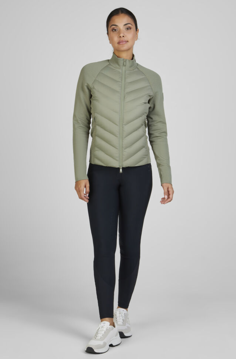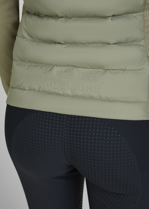 Pikeur hybrid jakke fra Athleisure kollektionen SS25. En smart og sporty let jakke med mange anvendelsesmuligheder. Jakken er uden store logoer og med et enkelt og smart look. Gode lynlåse har den også- jakken lukkes med en 2-vejs lynlås og lommerne har også gode lynlåse. Materialet i sider og ærmer er stretchy og åndbart med et lækkert rib-look. Jakken er kviltet foran og bagpå, så man holder sig lun på overkroppen. Den fylder ikke mere, end den kan være under en varm vinterjakke når det er rigtig koldt. Det her er en jakke til ridning, til gåturen med hunden, til løbeturen når det er koldt eller måske til golf? Pikeur er tysk kvalitet med stolte traditioner. Det kan vi lide.
