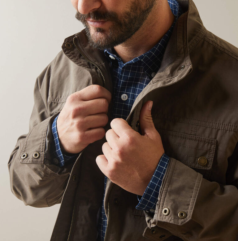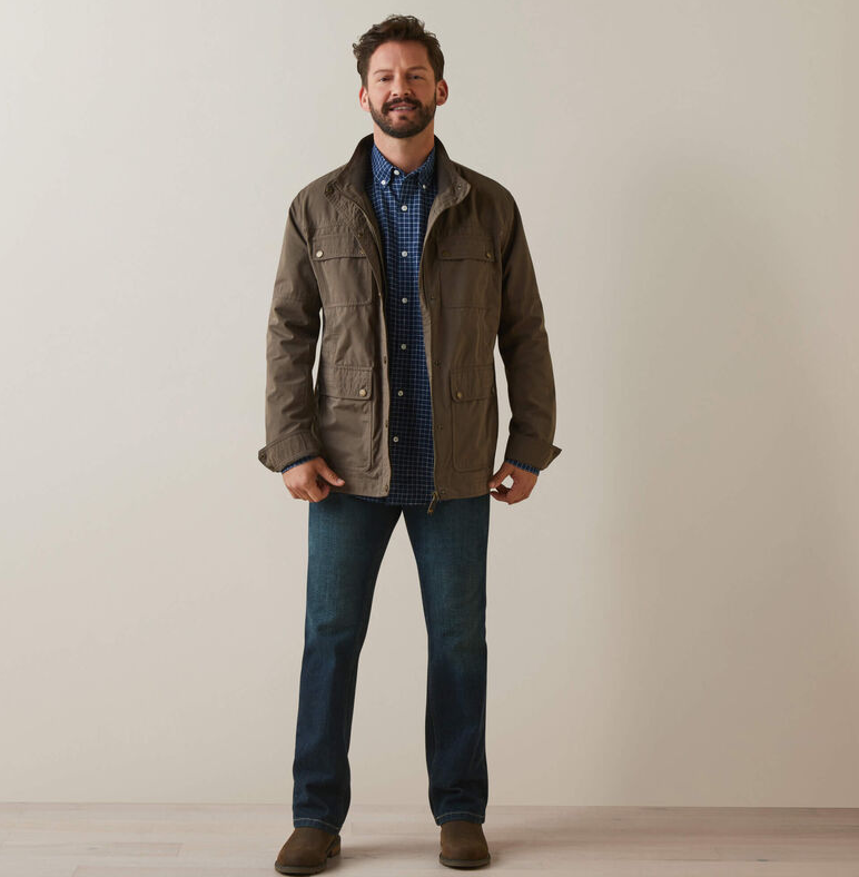 Ariat Calumet jakken er en super praktisk og stilfuld jakke til brug ved alle former for udeaktiviteter. Calumet er fremstillet af en økologisk bomuldsblend i kraftigt materiale, som gør den slidstærk og praktisk. Calumet er vandtæt og holder vind og regn ude.Det er som en opgraderet version af skovmandsskjorten. Masser af lommer og lækre detaljer gør denne jakke ekstra anvendelig. En lækker jakke til lige at snuppe på i stalden eller til byturen. Også smart til jagtselskaber eller gåturen med hunden?