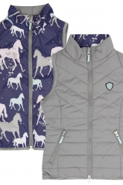 Covalliero Mila vendbar vest er en "body warmer" fra forårs/sommer kollektionen SS19 MEN den kan anvendes året rundt. Den er let og fylder ikke så meget, så den kan bruges under en jakke om vinteren eller uden jakke som en ekstra lille "body warmer". Covalliero Mila vesten er vendbar så den er ensfarvet på den ene side og har heste print på den anden side. Mila vesten er yderst behagelig og sporty.