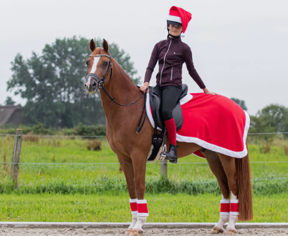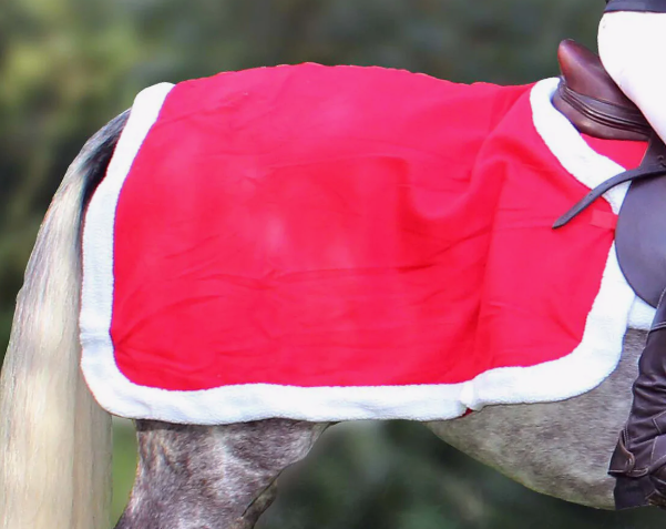 Lændedækken i blød fleece med tyk hvid kant. Nem at sætte fast i sadeln med stropper.
