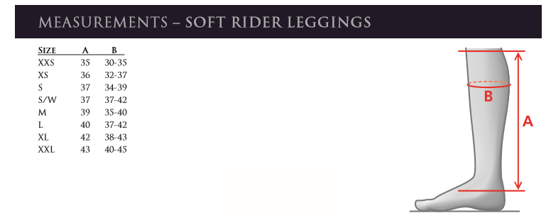 Mountain Horse Soft Rider Leggings med elastisk læg og super pasform. Du finder dine måle ved at måle det bredeste sted på læg og højden bagpå læg fra over hæl og til under hasen. Har vi ikke den ønskede størrelse hjemme kan vi hurtigt have den, hvis du giver os besked.