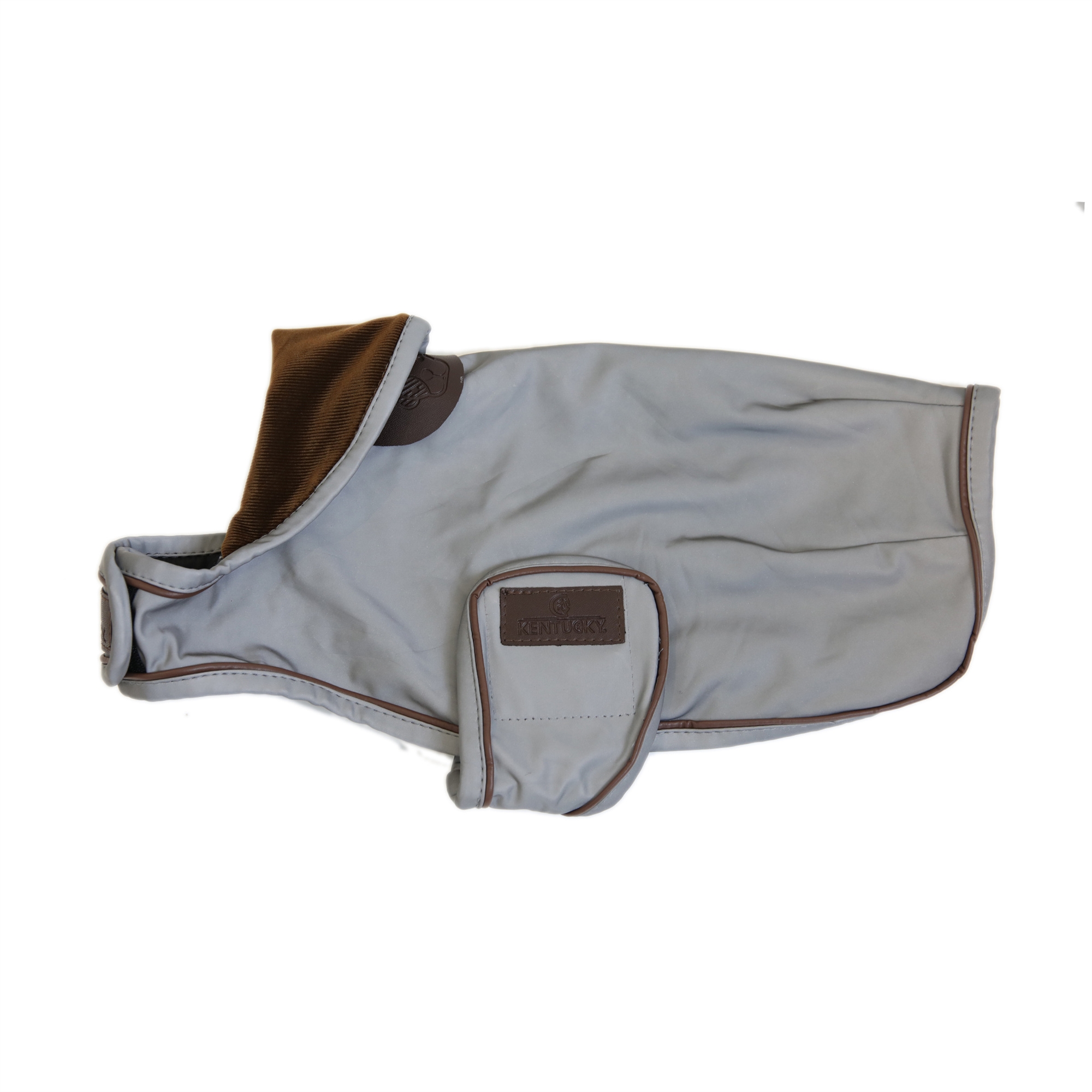 Dog Coat Reflective & Water Repellent - hvis sigtbarheden er dårlig eller hunden er meget ude på dagens ydertidspunkter, så er denne lækre hundefrakke helt genial! Kentucky Dog Coat Reflective & Water Repellent sørger for maksimal sikkerhed til hunden, og frakken hjælper til at de elskede hunde kan ses - samtidig sikrer det også hundeføreren ved gåture og løbeture langs vejen på den måde, at refleksfrakken lyser op på- det vil få enhver anden trafikant til lige at holde lidt ekstra øje og passe på! Halsen/nakken kan foldes tilbage. Halsen er foret med blødt fløjlsmateriale. Resten af denne hundefrakke har glat underside. Hundefrakken fremstår grå med brune kanter og brunt fløjl i halsen.