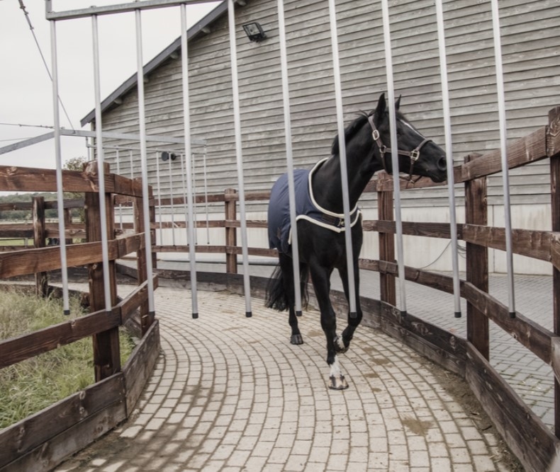 Kentuckys Walker dækken er vandtæt og et super lækkert teknologisk walker dækken. Dækkenet er i tre lag med ydermateriale i 600D som ydermere har en vandtæt og åndbar membran. På indersiden ef det vandtætte walker dækken er der Kentuckys lækre imiterede kaninpels hvilket også er ved hals og bringe og skuldre for at give bedre komfort til hesten under arbejde. Walker dækkenet er genialt til brug i walkeren men også til longering samt gåture ved hånd. Dækkenet har 2 krydsgjorde samt en halestrop. Imiteret læderkant giver det sædvanlige klassiske og eksklusive look til Kentuckys udstyr. Kan vaskes ved 30 grader i maskinen.