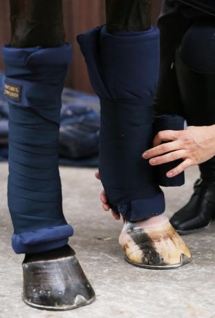 Kentuckys Repellent Stald bandager er fantastiske at arbejde med, fordi spåner mm ikke hænger fast i dem som det gør på almindelige bandager. De er nemme at gøre rene og børste af og de er lavet af fiber materiale som gør dem meget åndbare. Lukningen er lavet af stærk og holdbar velcro. Kentuckys Repellent Stald bandager kan bruges sammen med Kentuckys kviltede bandage underlag - eller andre bandageunderlag- og de er ideelle til transport eller ophold i stald - en også til dagligt arbejde, hvor man gerne vil have hesten godt bandageret. De fås i en størrelse og i navy eller sort.