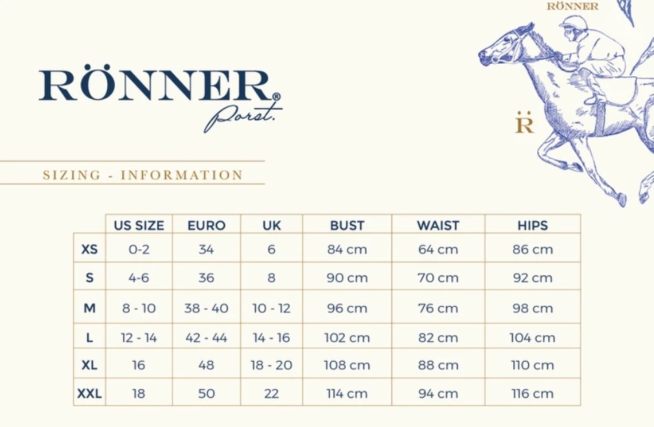 Vi vil altid gerne bestille særlige ønsker hjem fra Rönner. Tøv ikke med at kontakte os! Størrelserne fra Rönner er ret normale - se størrelsesskema.