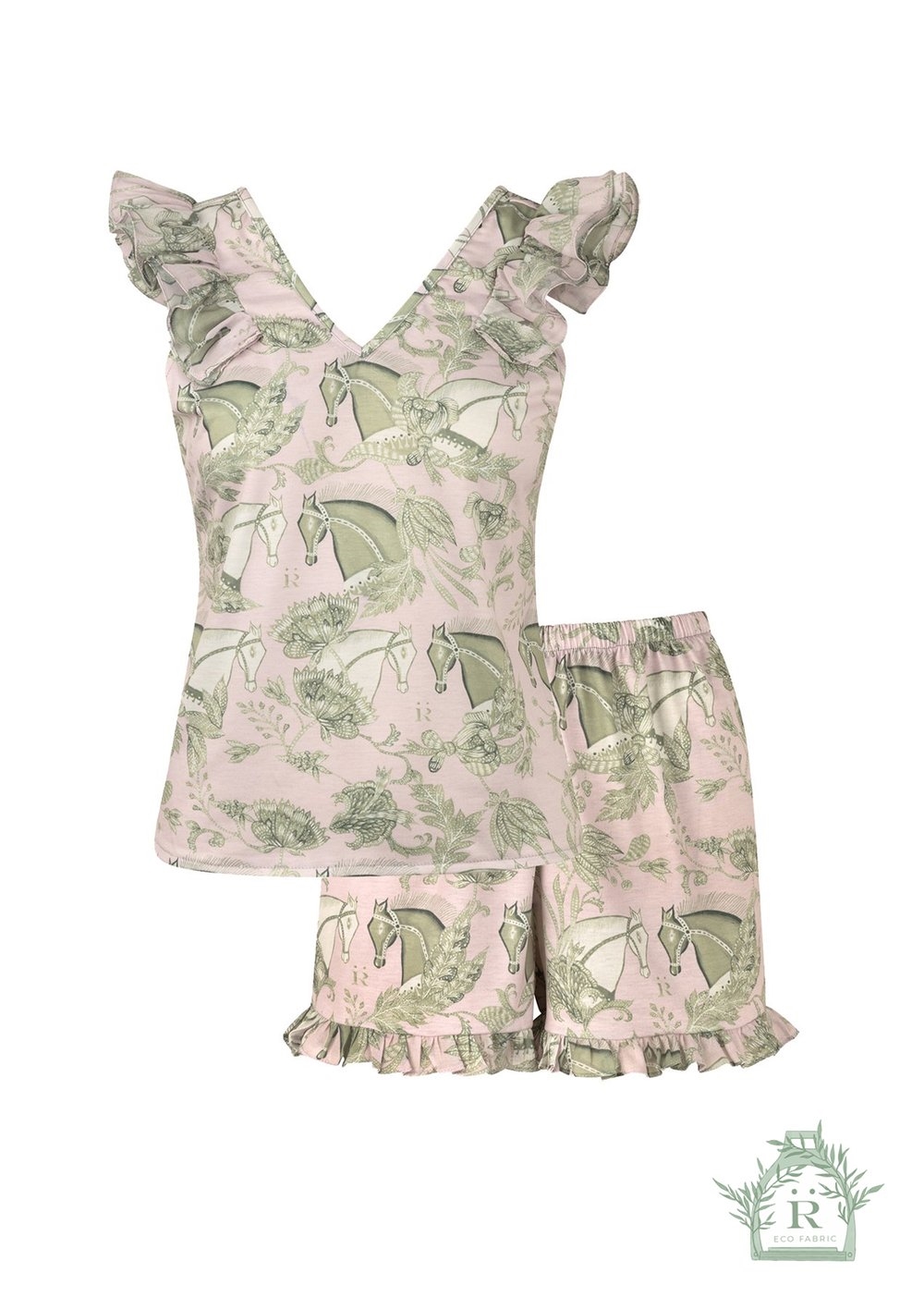 Rönner Aquarius Pyjama Set Shorts & Ruffled Top. Materialet er lavet ud af genbrugsmaterialer.
