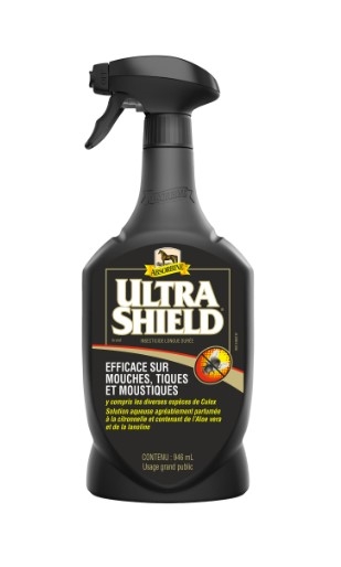 Denne fluespray kaldes ofte "Den Sorte - den der virker" - Ultrashield er GODKENDT i Danmark og har danske etikette på. Rigtig mange oplever, at denne fluespray er en af de mest effektive. Den hjælper hesten i kampen mod gener fra stikkende og bidende insekter som fluer, myg, klæge, mitter, hestebremser, flåter, lopper mm.