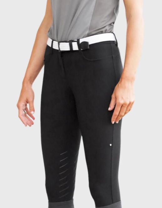 Equiline dame ridebukser med knægrip i det populære B-move materiale. Disse ridebukser fra Equiline, som er en del af forårs/sommer kollektionen 2021, er yderst velsiddende og klassiske. Kender du ikke allerede Equlines B-move materiale, så skal du absolut overveje at prøve det. Materialet er super elastisk og får bukserne til at sidde virkelig flot. De er ikke "gennemsigtige" eller afslørende men får det bedste frem i de kvindelige former. Bevægeligheden er i top. Disse er med knægrip.