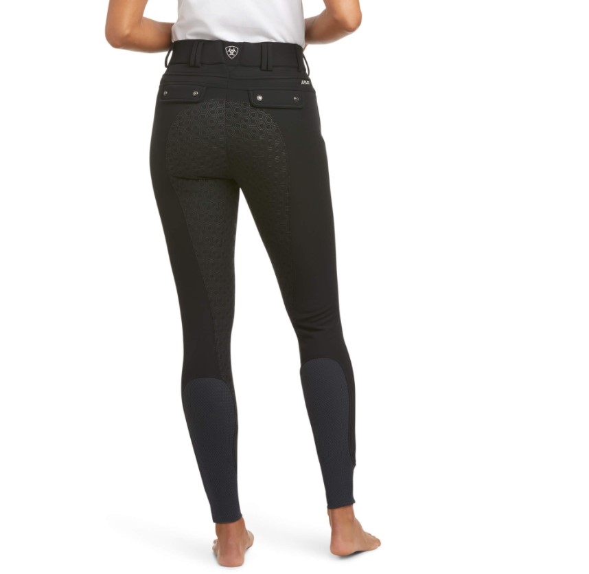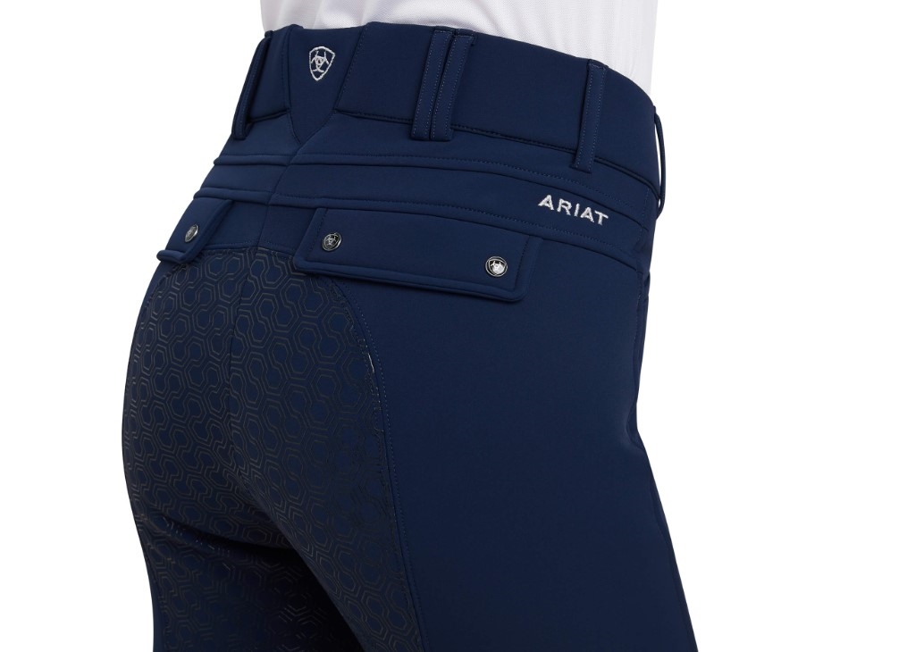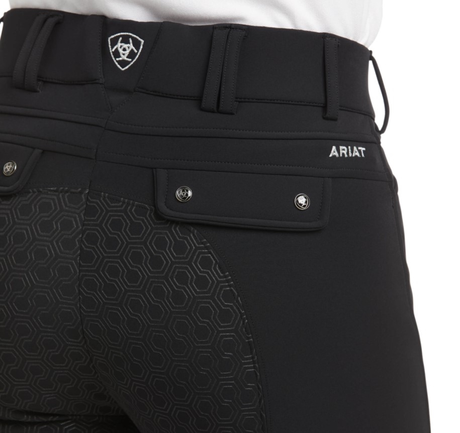 Materialet Ariat arbejder med "Core Control Technology" virker opstrammende. Disse ridebukser tilbyder rytteren super bevægelighed samtidig med støtte. Ariats "Moisture Movement Technology" sikrer at fugt hurtigt fjernes fra huden så man ikke bliver kold og våd. Ridebukserne er med Ariats populære Ariat® Silicone Grip. Softshell materialet har børstet fleece på indersiden. Skrålommer foran. Behageligt elastisk materiale ved ankel og læg.