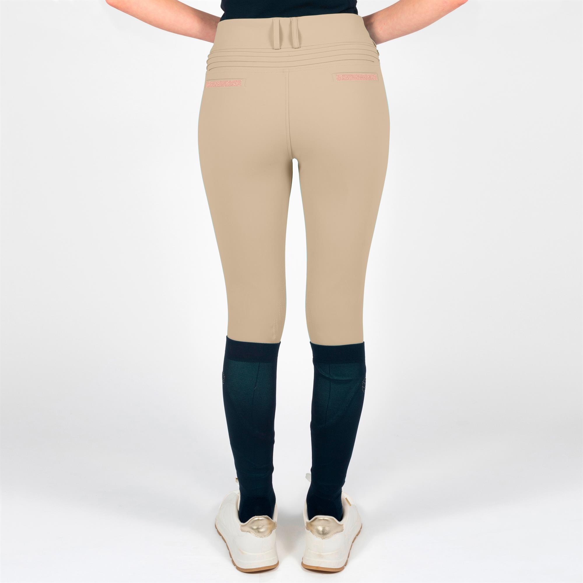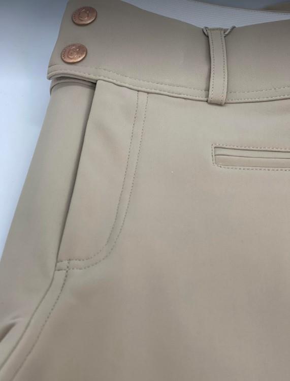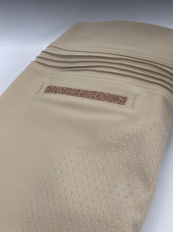 Samshields ridebukser er meget anbefalelsesværdige. De er super behagelige at ride med, det er flotte på og de holder godt. Samshield Clara er en højtaljet ridebuks og denne har full grip. Ridebukserne Clara findes i flere farver, men da Clara fortsat hører ind under Samshields kollektioner, er det stadig i begrænset antal. Vi tilbyder denne sæsson Clara i farven Avocado som er en skøn grøn der spiller godt sammen med alle efterårs og vinter nuancerne. Den Chocoladefarvede er en varm mørkebrun farve, og så er der sandfarve med rose gold detajler samt klassisk navy og hvid. Samshields bukser er fremstillet af italiensk kvalitet materiale, og stoffet føles som "another skin" mod huden. Crystal fabric på baglommerne og Swarovski Samshield logo ned ad venstre lår. På de sandfarvede ridebukser med rose gold detaljer er lynlåse samt knapper også i rose gold.