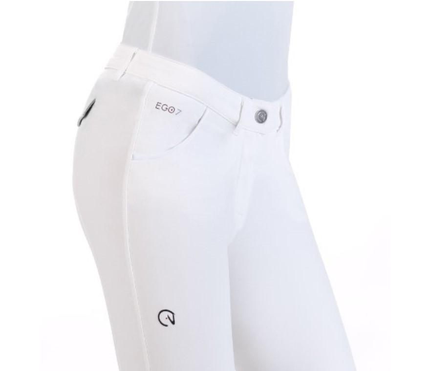 EGO7 ridebukser PT med baglommer og knægrip. Disse ridebukser har traditionelle skrålommer foran og snydelommer bagpå. Super lækkert elastisk materiale, fremstillet i italien. Siliconegrip på knæ samt i taljen, for at sikre at bukserne sidder perfekt. EGO7 grip er virkelig godt og sikrer god stabilitet i sadlen. EGO7 er italiensk og kendt for at være virkelig velsiddende og samtidig meget behageligt. EGO7 tilbyder ridetøj til den modebevidste og elegante rytter som samtidig ønsker ridebukser der kan leve op til høje krav om pasform og bevægelighed.