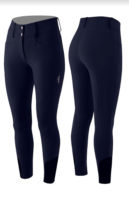 Fantastiske højtaljede ridebukser med fullgrip fra Animo. Animo Nuka er en yderst velsiddende og meget behagelig ridebuks med høj talje, klassiske skrålommer, bæltestropper og fullgrip. Animo logo i swarovskisten på venstre lår. Animos materiale er nærmest afhængighedsskabende, så behageligt det er. Blødt, elastisk og bare virkelig lækkert at have på.