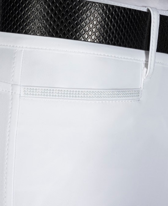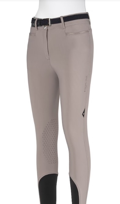 Equilines højtaljede ridebukser med knægrip i den skønneste farve "deep sand"- eller i hvid. En del af forårs/sommer kollektionen 2023. Materialet er Equilines populære B-Move light som er en let og stretchy metervare som tilbyder rytteren optimal bevægelsesfrihed og komfort. Super stretchy, fugtregulerende, hurtigttørende og elastisk. Desuden er Equilines ridebukser bare virkelig velsiddende- det er ikke uden grund, af rigtig mange af verdens topryttere rider i Equiline! Størrelserne er italienske - vi anbefaler at du vælger 2 størrelser større end du normalt ville vælge.