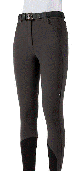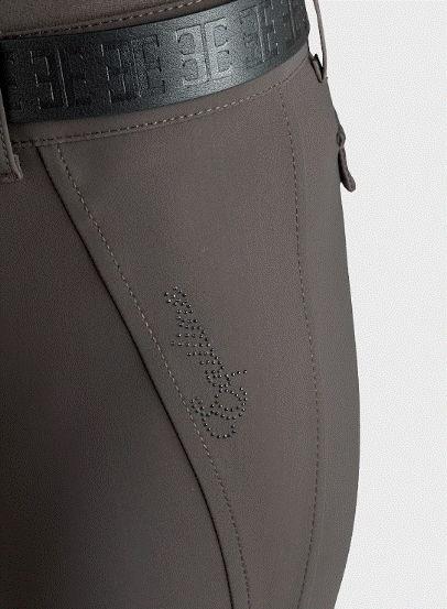 Equiline Ettie ridebukser med knægrip er med mellemhøj talje - Equiline har dog betegnet dem som højtaljet, men vi synes ikke de er helt så høje, som Equilines andre højtaljede. Equiline laver bare det lækreste og mest velsiddende ridebukser og disse er med lidt ekstra wow-effekt! Super lækker ridebuks som har masser af specielle detaljer og et super eksklusivt look har Equiline Ettie ridebukserne. De findes i øvrigt også med fullgrip. Snydelommer bagpå, lynlåslommer foran og Equiline logo med fine tone-i-tone sten på venstre lomme foran. Skåret så de bare sidder virkelig virkelig flot! Materialet er B-MOVE, som er Equilines uovertruffne elastiske materiale - det er hurtigtørrende, stretchy, åndbart samtidig med at det er med UV beskyttelse. Materialet er med "Anti-piling" så det ikke bliver fluffy i overfladen. Et materiale som ud over at være holdbart også lever op til den kræsne (og krævende) rytters ønsker om bevægelighed og look.