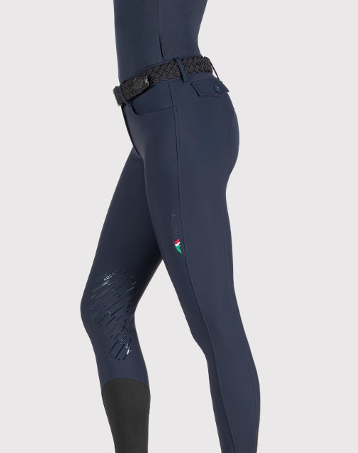 Equiline Corner ridebukser til dame er fremstillet i et super lækkert strækbart materiale, som føles blødt og behageligt mod huden. En pasform med en almindelig talje og smart snydelommer bagpå giver et sporty chino look til disse ridebukser. Equilines logo ved venstre lår og almindelig lommer foran. Bæltestropper i taljen. En smart og velsiddende ridebuks. Equiline er italiensk kvalitet og stil til den klassiske rytter. Værdsætter du velsiddende ridebukser og behagelige materialer, så skulle du tage at prøve disse nye ridebukser fra Equiline. Størrelserne er italienske, så vi anbefaler at man vælger 2 størrelser større end normalt.