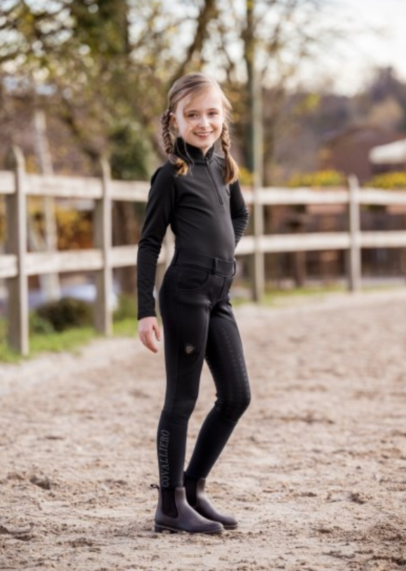 Covalliero er et tysk mærke som hvert år laver lækre ridetights i vintermateriale til børn. Disse tights er fremstillet i et softshell-agtigt materiale med varm børstet fleece på indersiden. Behagelig talje som i år er opgraderet med bæltestropper, hvilket gør dem ekstra anvendelige. Disse Covalliero ridetights er elastiske, varme, åndbare, velsiddende og bløde at have på. Der er sidelommer foran. Disse tights er pull-on tights.