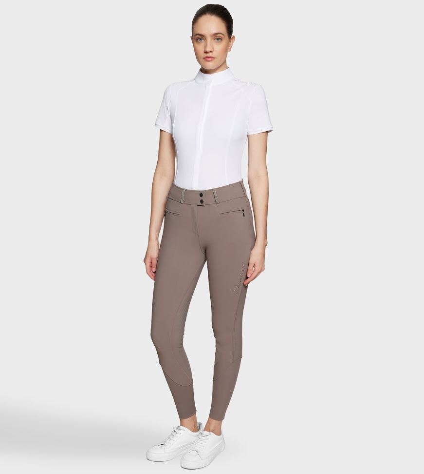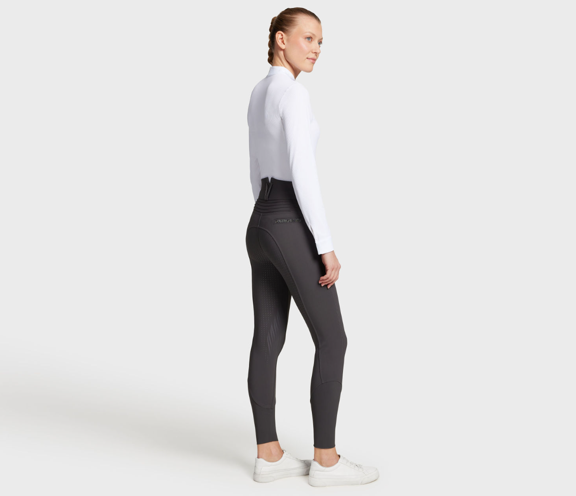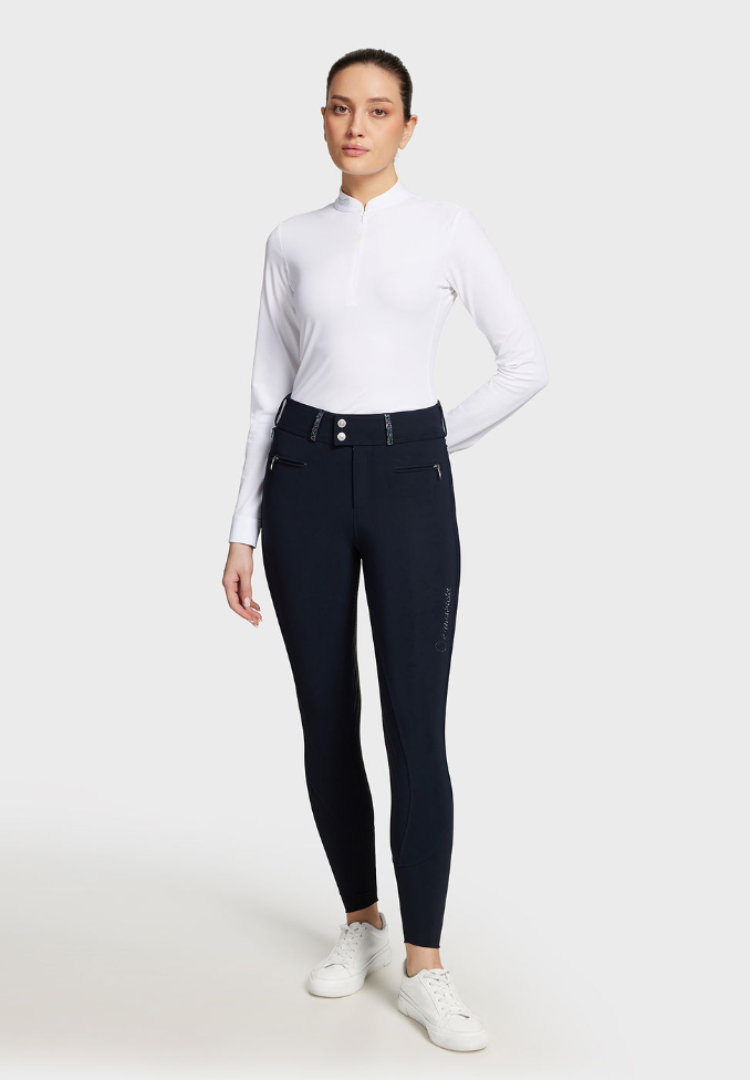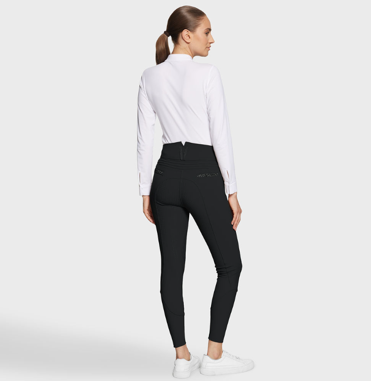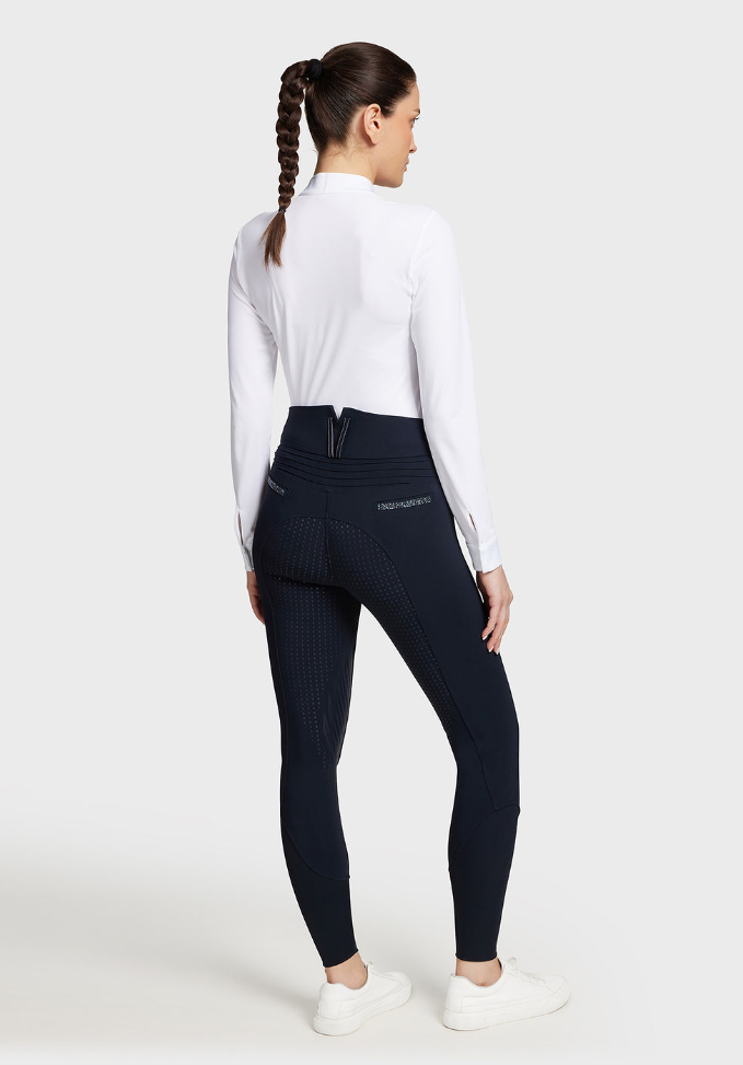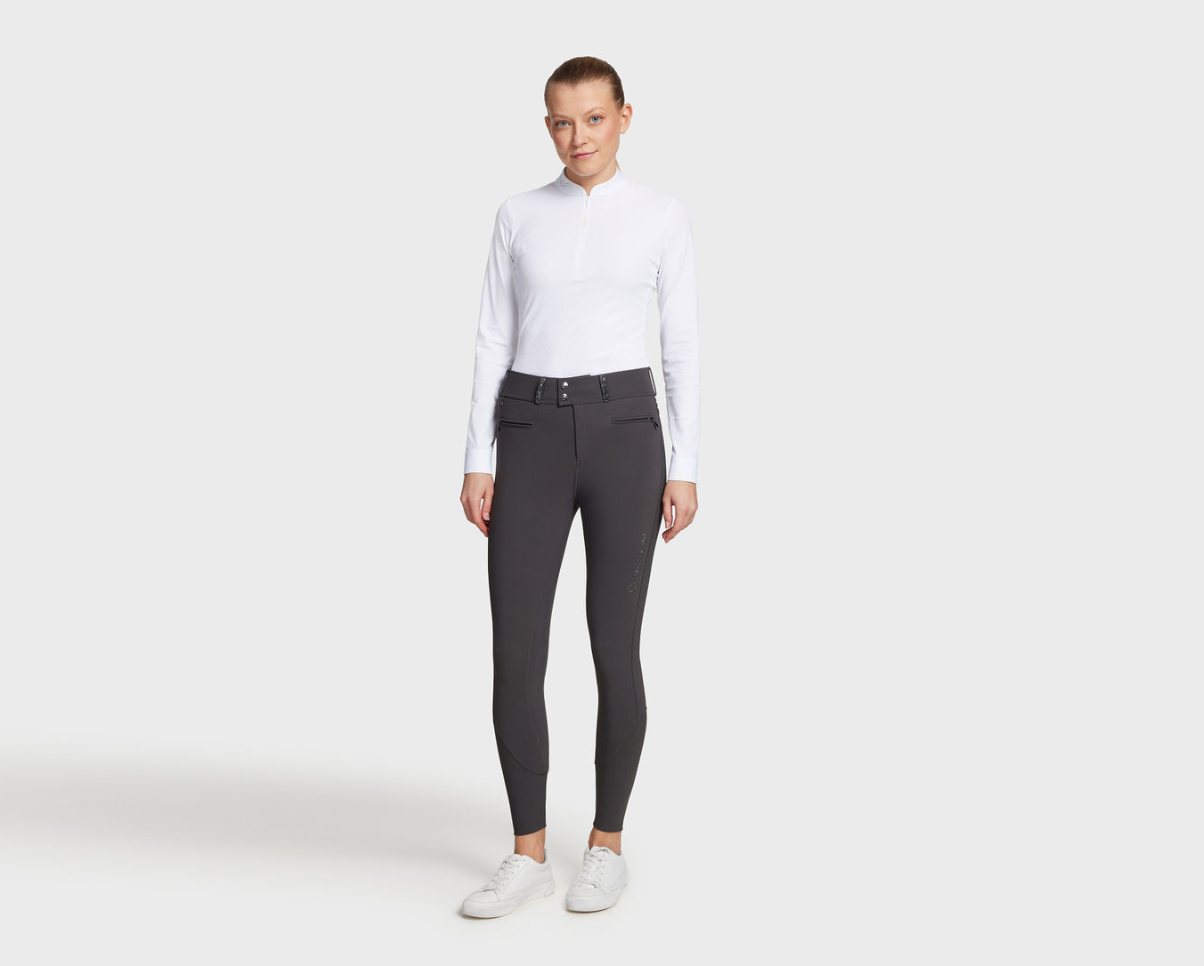 Kalder alle dressurpiger (og dressurtanter): Samshields højtaljede Claranova er en super flot ridebuks med fullgrip og høj talje, som går ekstra op ved lænden. Samshields ridebukser er meget anbefalelsesværdige. De er super behagelige at ride med, det er flotte på og de holder godt. Samshield Claranova er en kollektionsvare, så der er begrænset antal af disse ridebukser.
