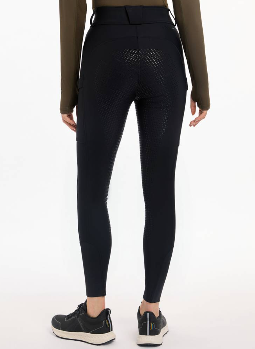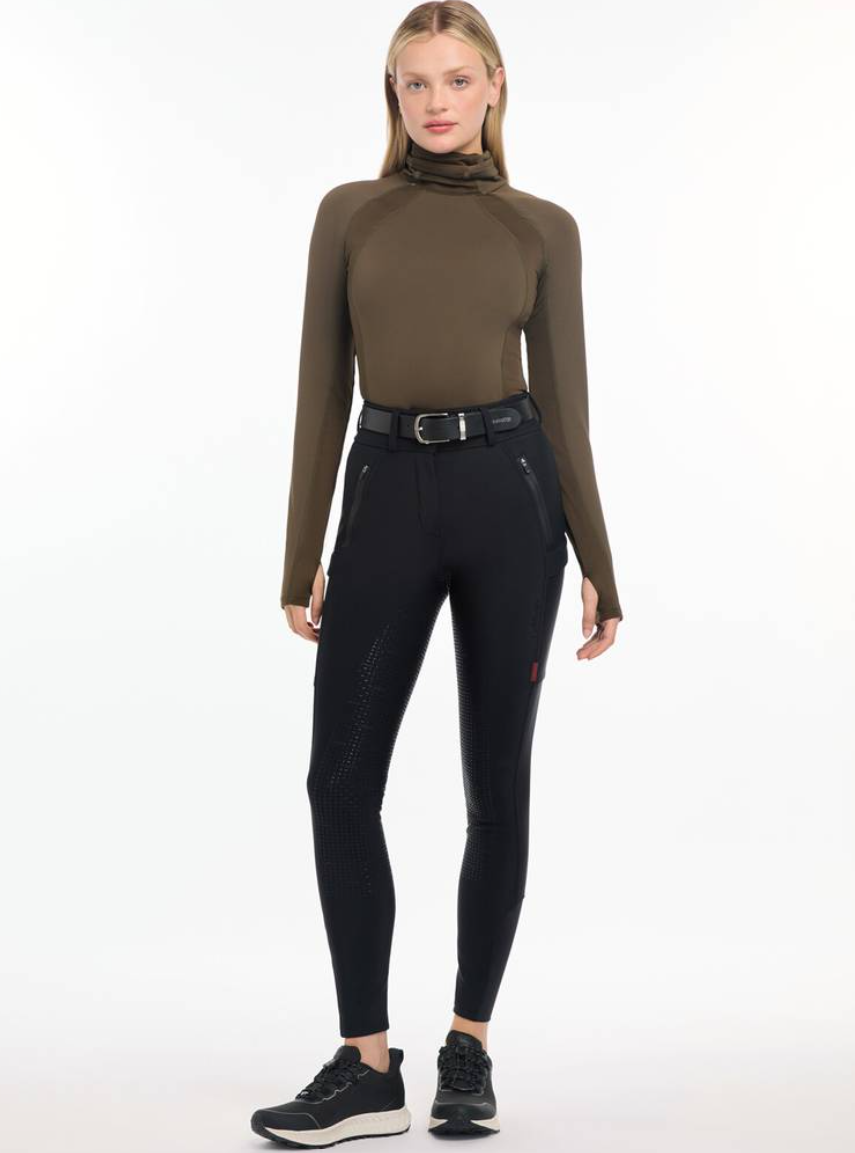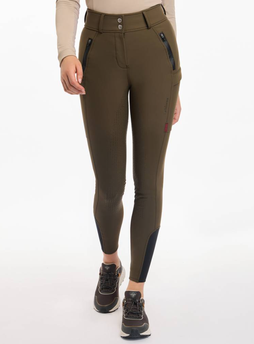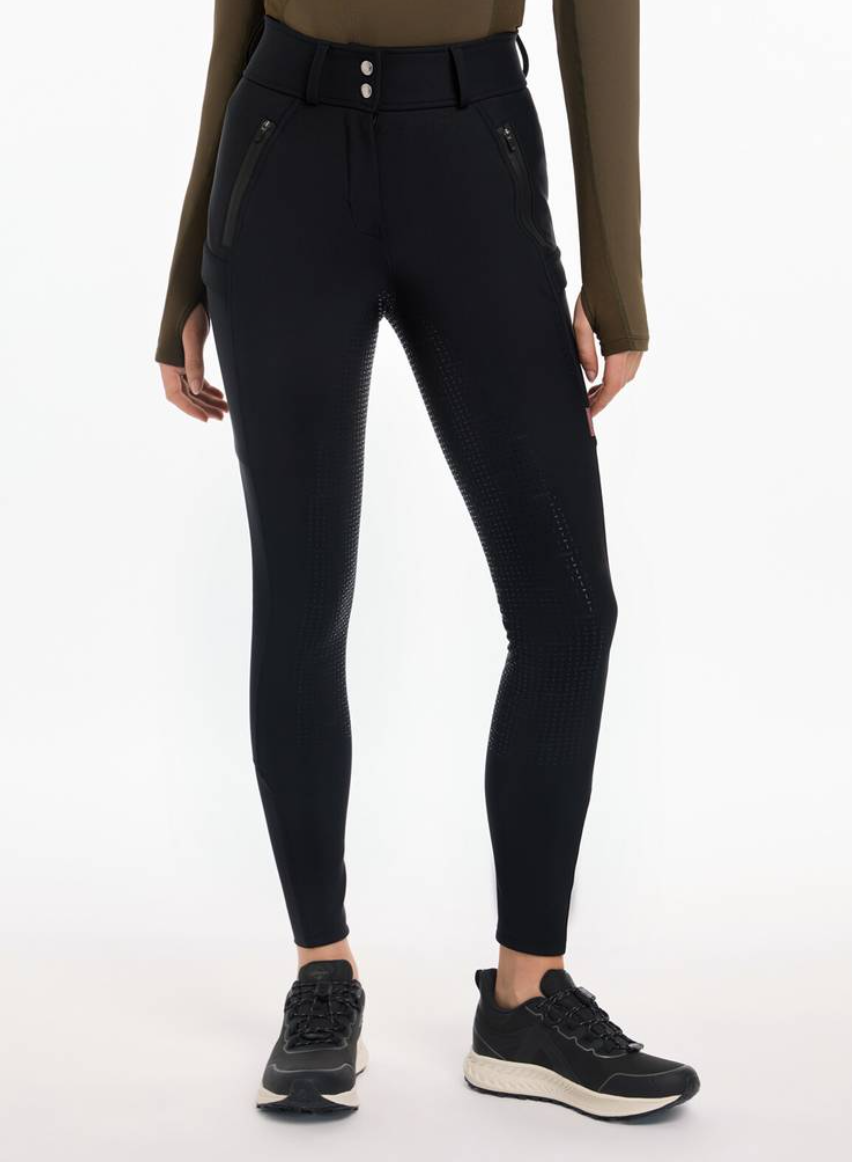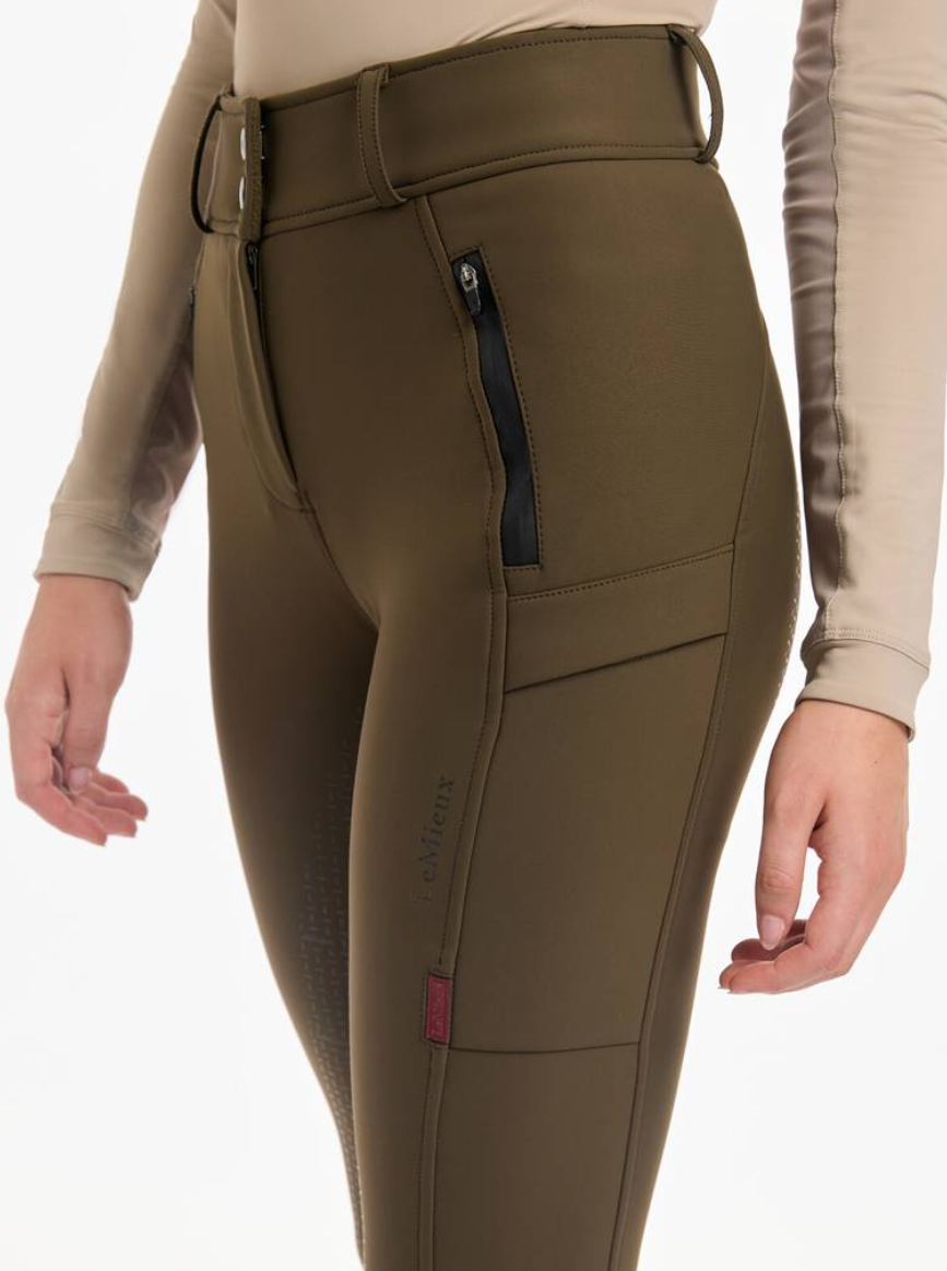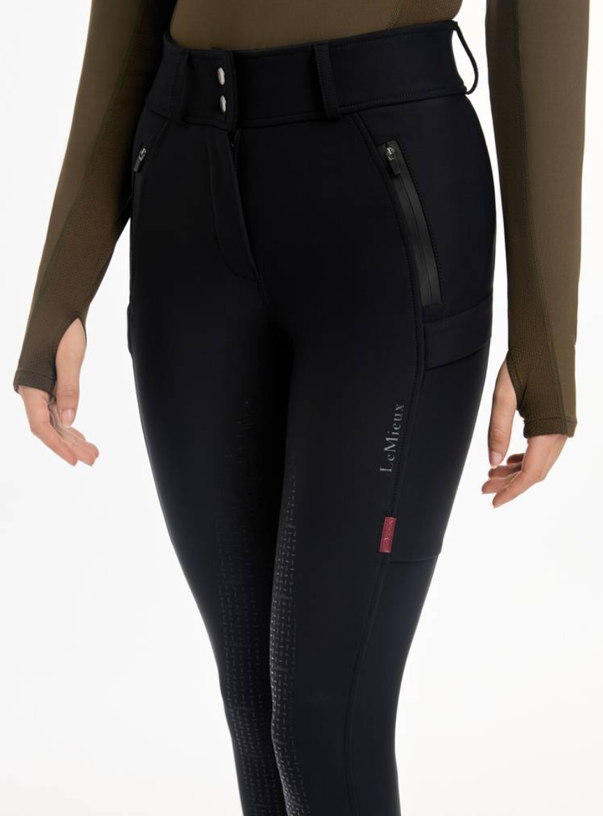 LeMieux Drytex vandtætte og vindtætte ridebukser med fullgrip. LeMieux Drytex Waterproof Breeches er ideelle til udendørsrytteren i Danmark! Til dig der skal ud at ride ligegyldig hvordan vejret er. Disse ridebukser fra LeMieux er fremstillet i et åndbart og solidt materiale med en unik membran i som gør disse ridebukser perfekte til de våde, blæsende og kolde dage. Vand og vind preller bare af. Disse ridebukser har vandsøjletryk på 10.000 mm og åndbarhed (MVP) på 5000mvp. Taljen er høj med bred linning og bæltestropper. Der er masser af lommer med plads til mobiltelefon og andet - nogle lommer har tapede lynlåse. Fullgrip i silicone giver god stabilitet i sadlen, og ridebukserne har desuden masser af stretch, så man kan ride helt uhindret af at have regntætte varme ridebukser på. Der er blød børstet fleece på indersiden som gør ridebukserne her ekstra varme og behagelige. Nederst i benet er der lidt ekstra blødt og elastisk materiale, så du nemt kan får bukserne af og på ved fødderne.