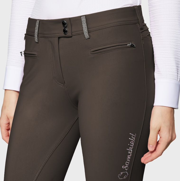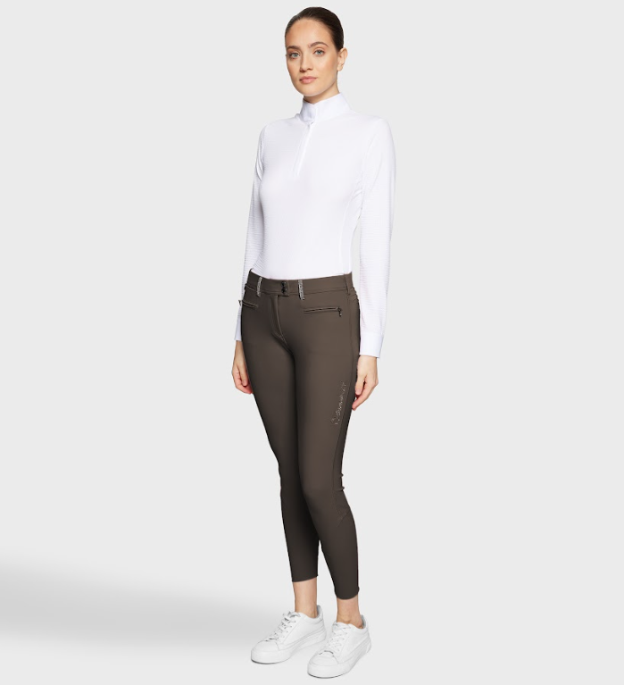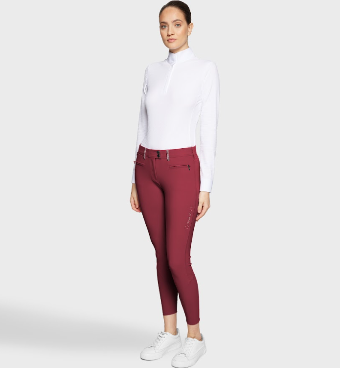 Samshields bestseller ridebukser Adele er med knægrip og smukke swarovski detaljer. Pasform og materiale er helt unikt og har man først en gang haft et par af disse bukser, så vil de fleste vende tilbage efter et par mere. Materialet er ultra blødt og strækbart. Bukserne har de karakteristiske plisseringer bagpå og fine pyntelommer med swarovski.