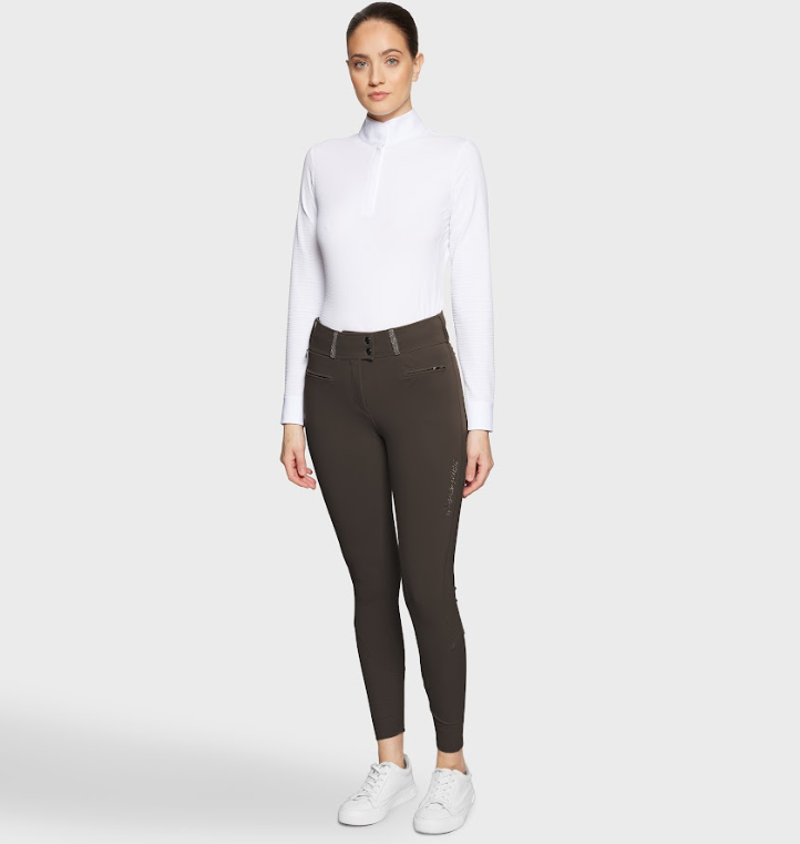 Samshield Claranova er den ultimative dressur ridebuks. Høj talje med ekstra høj linning bagtil, bæltestropper og smuk swarovski pynt. Materialet er ultra blødt og strækbart. Samshields ridebukser er unikke i både materiale og pasform. Disse er kollektionsfarver fra AW25 kollektionen, så der er begrænset antal.
