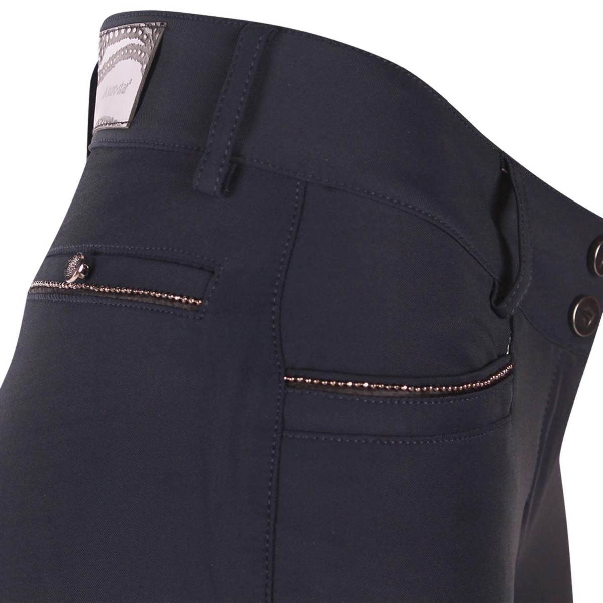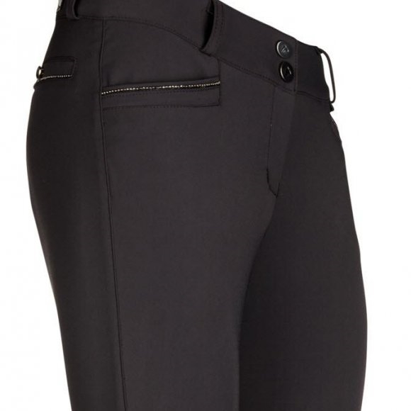 Euro-star Arielle er måske en af de smukkeste ridebukser vi længe har set! Og nu i SS20 kollektionen er de kommet i den lækreste mørkegrønne farve Green Gables! Euro-star Arielle er en funktionel ridebuks med iøjnefaldende detaljer. Arielle har lommerne dekoreret med små perler med metal look både på skrålommerne foran og på lommerne bagpå. Euro-star Arielle er fremstillet med Euro-stars GripTec full seat. Pasformen er super med 4-way stretch. Materialet er yderst åndbart og samtidig vandafvisende. Pasformen er normal med en smule lav talje. Men som alle andre af Euro-stars ridebukser, så tilbyder Arielle rytteren super komfort samtidig med at ridebuksen sidder flot og komplimenterer rytterens former.