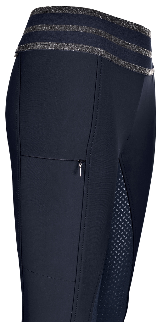 PIkeur Ida fullgrip ridetights til piger er en ualmindelig lækker ridebuks til den unge rytter! Pikeur Ida fullgrip ridebuksen er i et yderst elastisk materiale med elastik i taljen. Pasformen er super og ridebukserne er behagelige samtidig med at de sidder godt. På siden er Pikeur skrevet med flotte sten og der er en god lomme til mobiltelefonen. Er på lager i navy og sort.