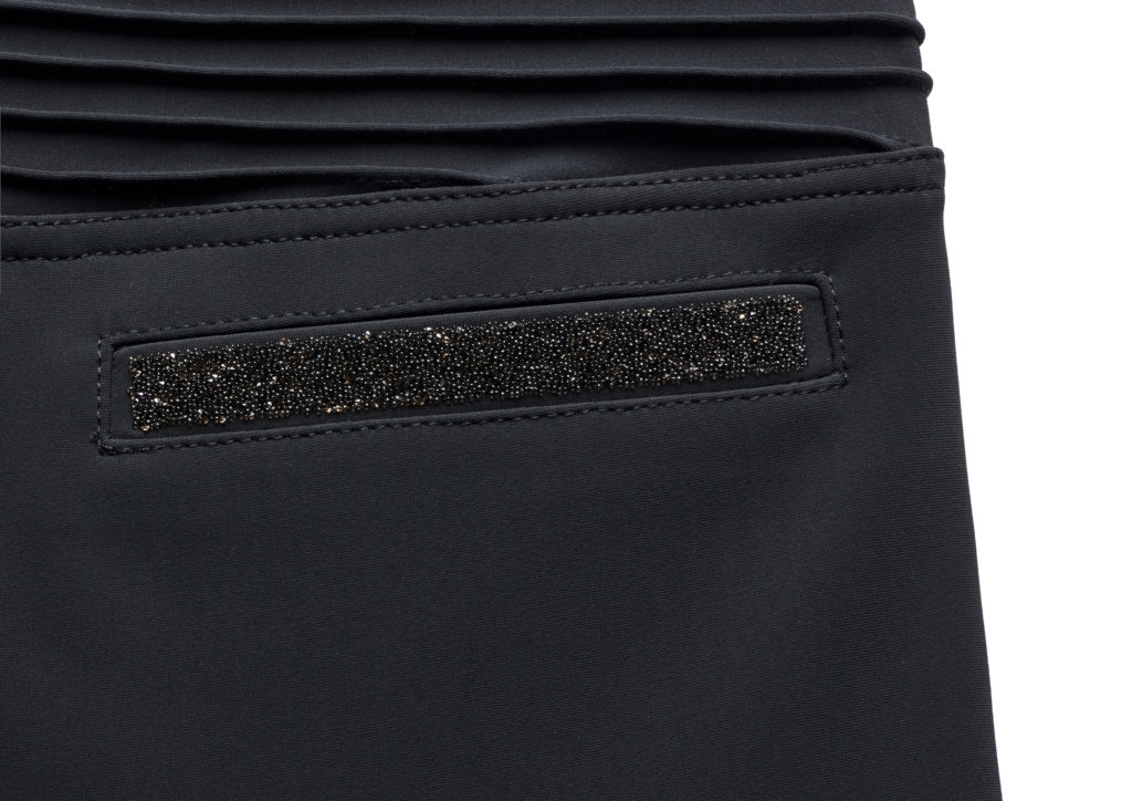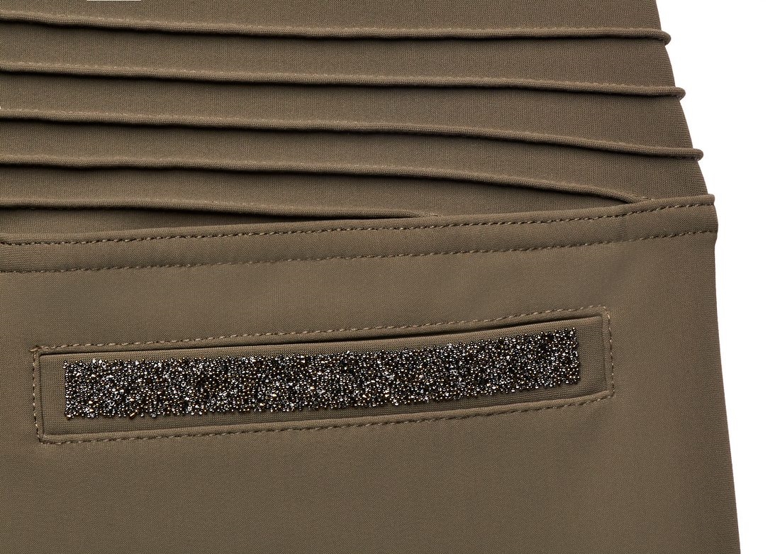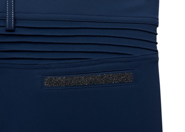 Adele har mellemhøj talje og har virkelig flotte detaljer i form af de plisserede syninger bagpå ved lænden, der er flot swarovski-logo på venstre ben som er stilfuldt og ikke "for meget". Lommerne bagpå har også swarovski "krystal fabric" på. De to lommer foran har lynlås.