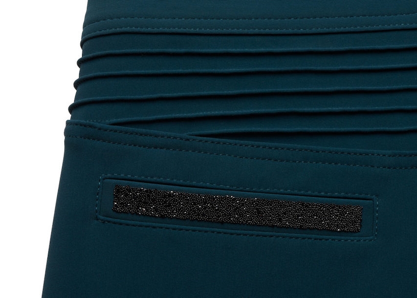 Adele er en virkelig lækker ridebuks som er meget strækbar i materialet, hvilket giver rytteren optimal bevægelsesfrihed. Stoffet er elastisk og lækkert men ikke gennemsigtigt. Adele har knægrip og i taljen er det også et let grip i elastikken som sikrer, at bukserne sidder utrolig godt.