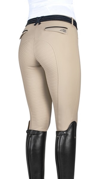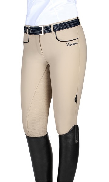 Equiline Peony er en full grip ridebuks i lækkert softshell agtigt vintermateriale, som har "Active wind stop". Peony er fra Equilines AW19 kollektion, og her får du en smart ridebuks der kan holde rytteren varm i de kolde måneder. Hvad enten det er lange dage i det kolde ridehus eller meget udendørs ridning i skov og natur, så er dette en ridebuks ud over det sædvanlige. Peony er både praktisk men også en sporty og smart ridebuks. Haves lige nu i hvid (og ikke beige som ses på billedet) hvilket kan redde rytteren for mange forfrosne timer til stævnerne- og så haves den også i en flot støvet navy/grå farve. Lommerne bagpå giver bukserne lidt ekstra sporty look. Equiline er italiensk og størrelserne til dame er små i det, så man skal ofte bruge 1-2 str større end man plejer.