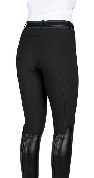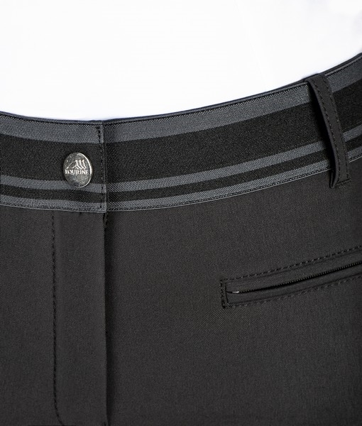 Equilines Cyclamen ridebukser til dame med knægrip er fra AW19 kollektionen. Dette er en sporty ridebuks med elastik i taljen. Elastikken har kontrastfarve og på den hvide er elastikken med bordeaux striber. Der er stadig stropper til bælte. Equilines ridebukser er fremstillet i Schoeller materiale som er elastisk og sikrer optimal pasform uden af være gennemsigtigt.