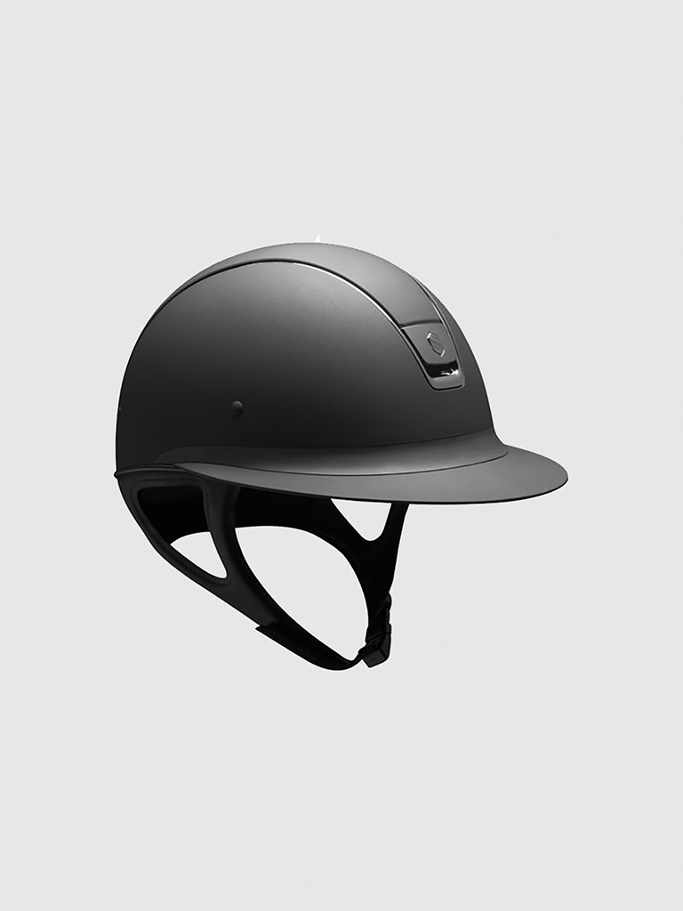 Samshield hjelmens hagerem og stropper er særligt anatomisk udformet og sikrer, at hjelmen sidder stabilt og perfekt på rytterens hoved også under ridning. Samshields hjelme findes også med særlig dressur-cut udformning i nakken, så der er plads til knold/valk.