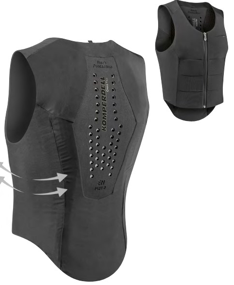 Komperdell Ballistic FlexFit Cross Flex Protector er fremstillet med rygskjold bestående af flere lag flexibelt "dual-density foam" med EN-godkendelse 1621-2 level 2. Vesten tilbyder rytteren optimal bevægelsesfrihed i forhold til at den samtidig yder beskyttelse. Perforeringer i rygskjoldet giver høj åndbarhed. Vesten justerer sig automatisk i størrelse, da den er flexibel og kan udvide sig og forme sig efter rytterens facon. Vesten er let og behagelig at have på. Lynlås foran, så den er nem at tage af og på. Denne version af Komperdell Ballistic FlexFit vesten er opgraderet ergonomisk og giver god bevægelighed.