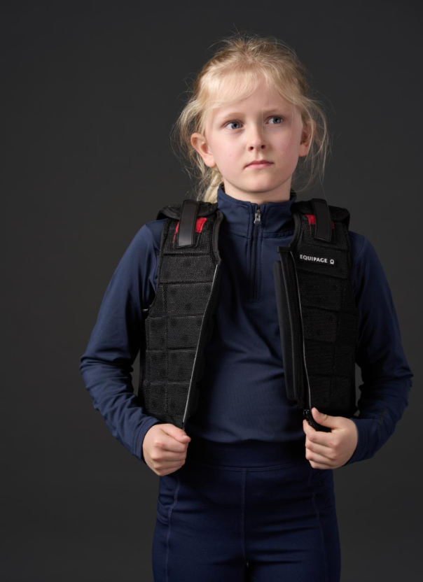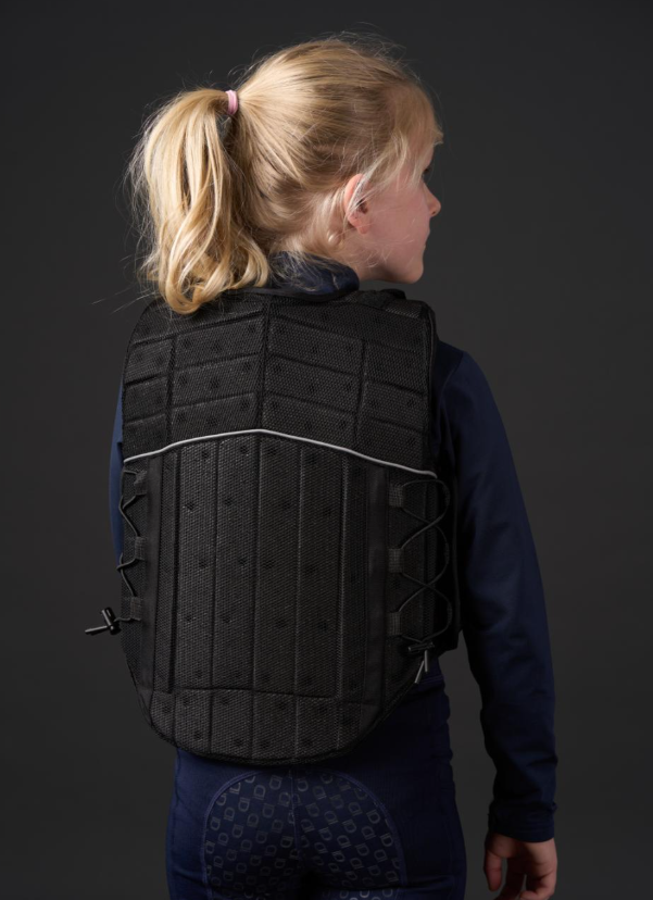 Åndbar pg let sikkrhedsvest til børn. Mange justeringsmuligheder og en høj grad af stødabsorbering og støddæmpning. Justerbare velcro-skulderstropper og snørebåndsjusteringer i siden giver en behagelig pasform. Lynlåslukning foran gør det nemt og bekvemt at tage den af og på.