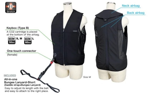 VH modellen fra Hit-Air er en ny type airbagvest. Den lukkes med lynlås og den er med stræk i siderne for øget komfort. Der er tynde paneler for øget sikkerhed både for og bag. Vesten er åndbar og har stadig den store vigtige nakke krave medens den ikke går helt så langt ned på lænden. Denne vest kan af ryttere under 18 år benyttes med et 1621-2 skjold monteret med en tynd sele.