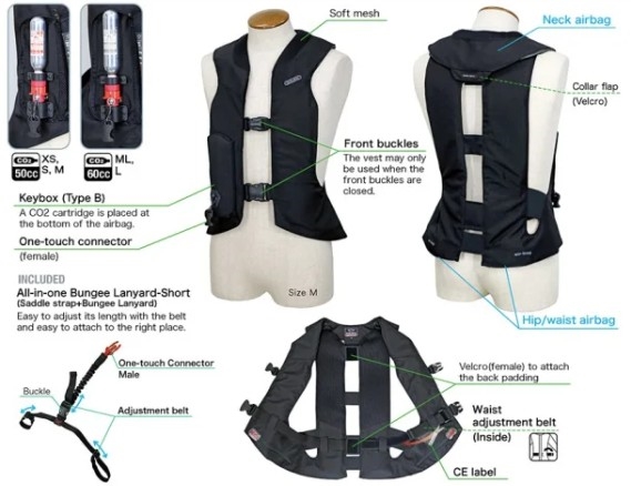 H2 modellen fra Hit-Air er den nye version af H modellen. Denne vest har paneler både for og bag for øget sikkerhed. Vesten er åndbar og har stadig den store vigtige nakke krave samtidig med at den går langt ned i lænden. Denne vest kan af ryttere under 18 år benyttes med et 1621-2 skjold som kan monteres på de velcro plader der er syet ind i vesten.