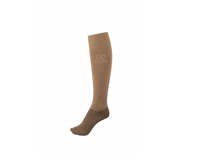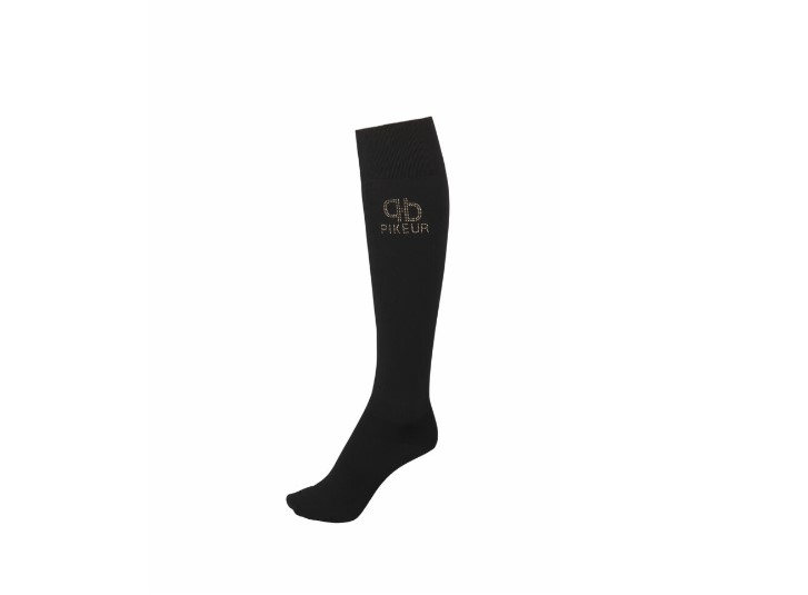 Lækre lette ridestrømper fra Pikeur. Tyndt materiale i behagelig bomuldsblanding. Logo i gylden farve med "nitter" på siden.