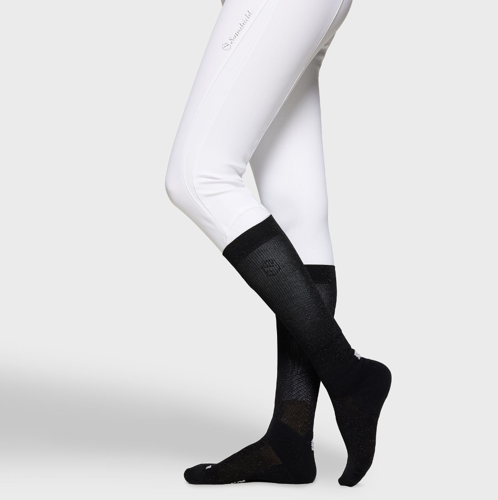 Samshields ridestrømper i blødt og tyndt materiale med let glitter (lurex) i. Super lækre og velsiddende.