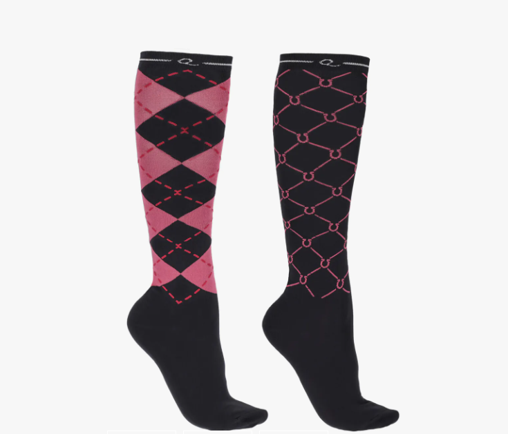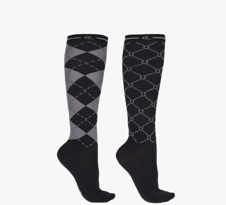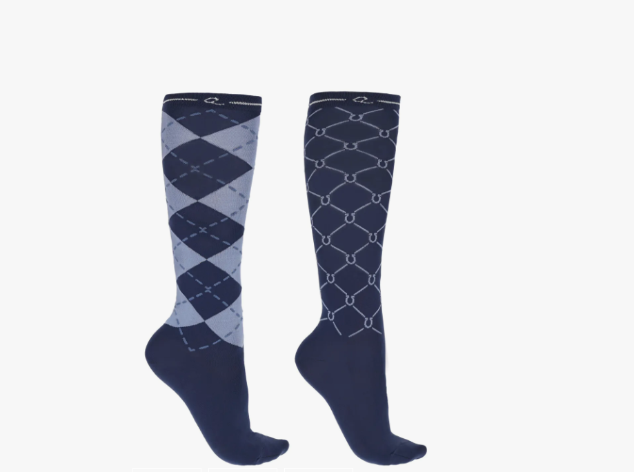 I en fin æske med 2 par strømper får du disse lækre elastiske ridestrømper med en behagelig pasform og tilpas tynde til at de passer både i ridestøvlerne men også til brug i almindeligt fodtøj hvis det skulle være.
