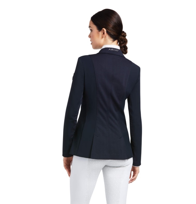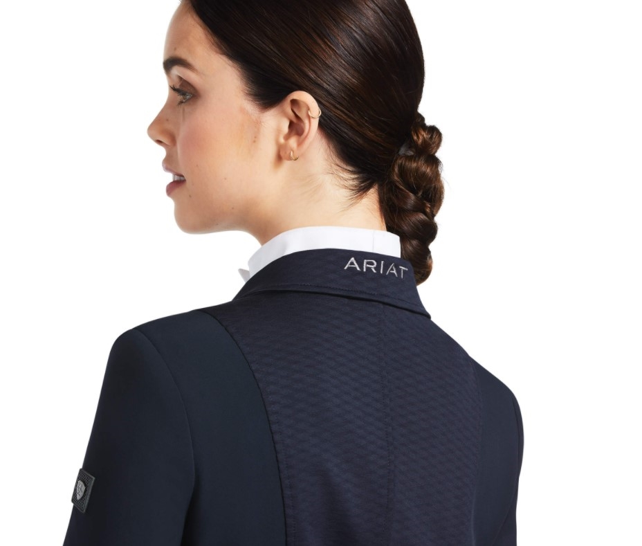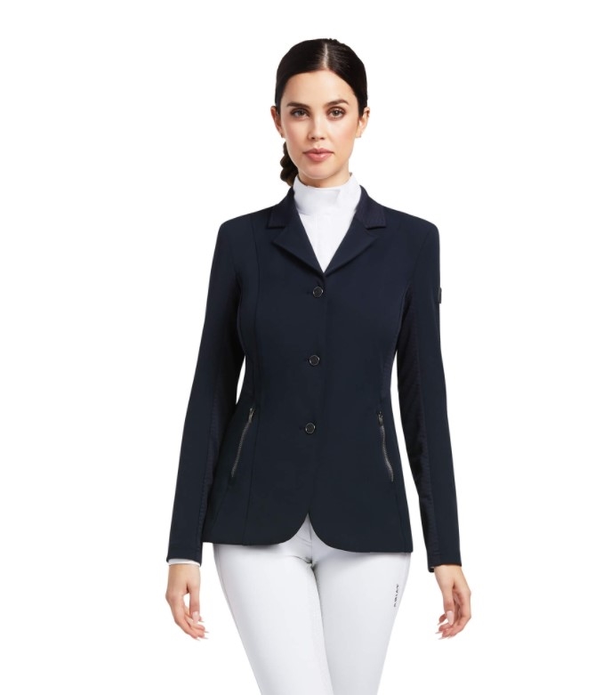 Med denne stævnejakke vil du føle dig mere end præstationsparat hvadenten du skal ride af midterlinien eller gennem start! Bellatrix stævnejakken er super sporty og teknisk. En "funktions stævnejakke" kan man vel nærmest kalde den. Elegant og velsiddende men samtidig med detaljer der gør, at du kan have den på i fitness! Den er åndbar og super nem at bevæge sig i. Ariats materiale "Moisture Movement Technology" fjerner fugt fra kroppen, er åndbart og stretchy. Skjult lynlås foran giver et super elegant fit.